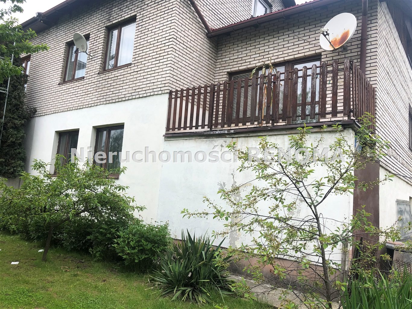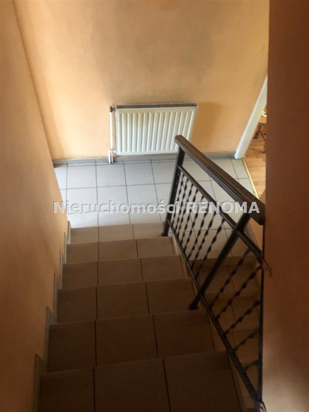 półpiętro: pokój z wyjściem na balkon, łazienka, kuchnia z oknem i jadalnia,