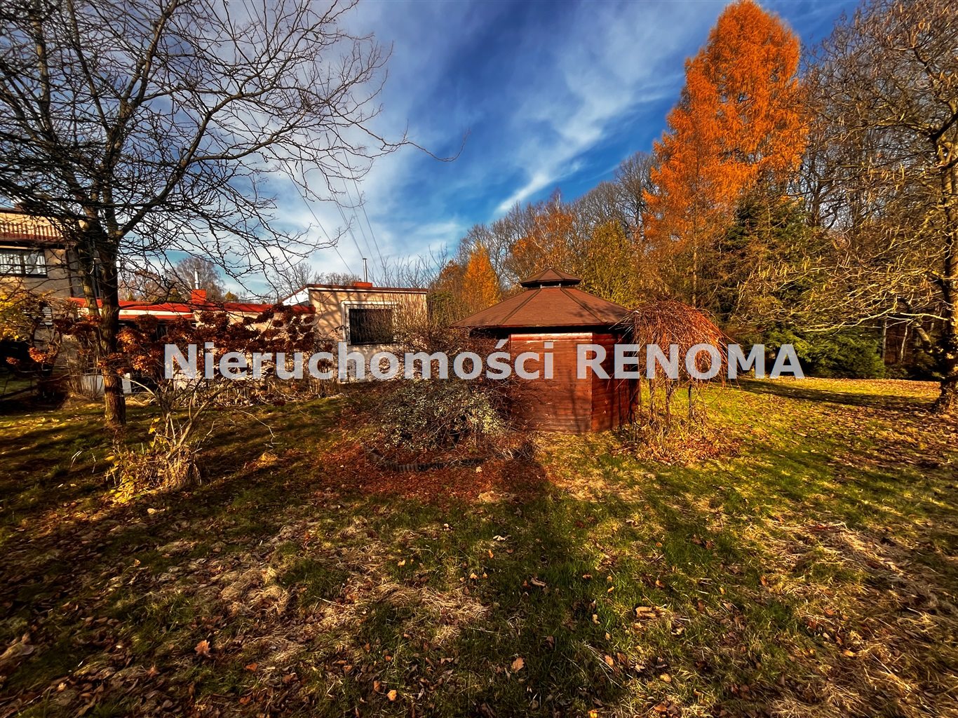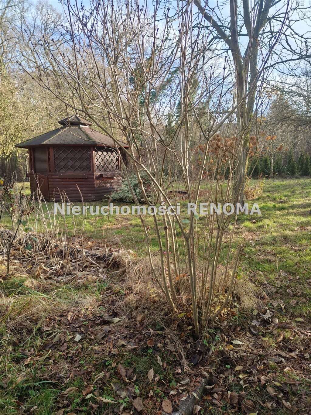Dodatki na działce: drewniana altana, drzewa i krzewy zapewniające prywatność
