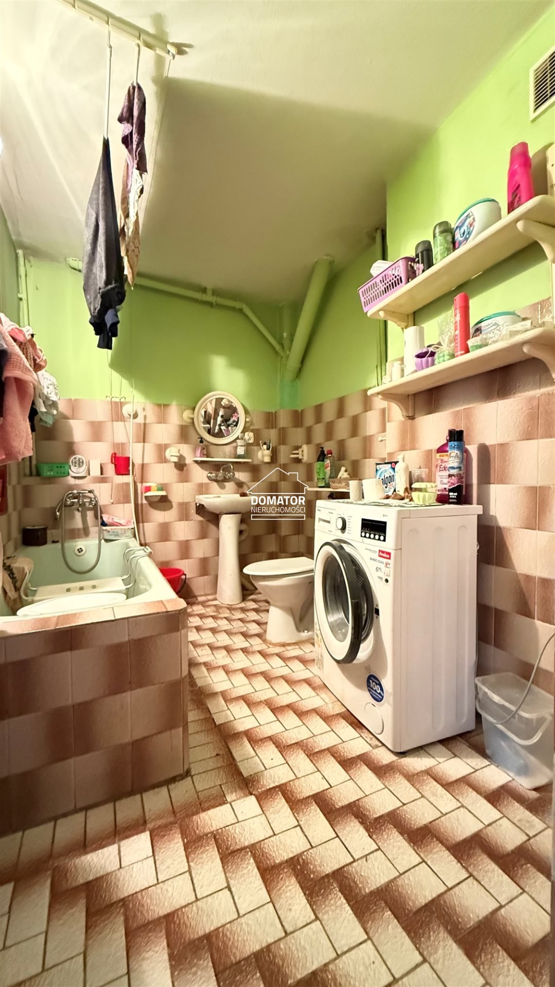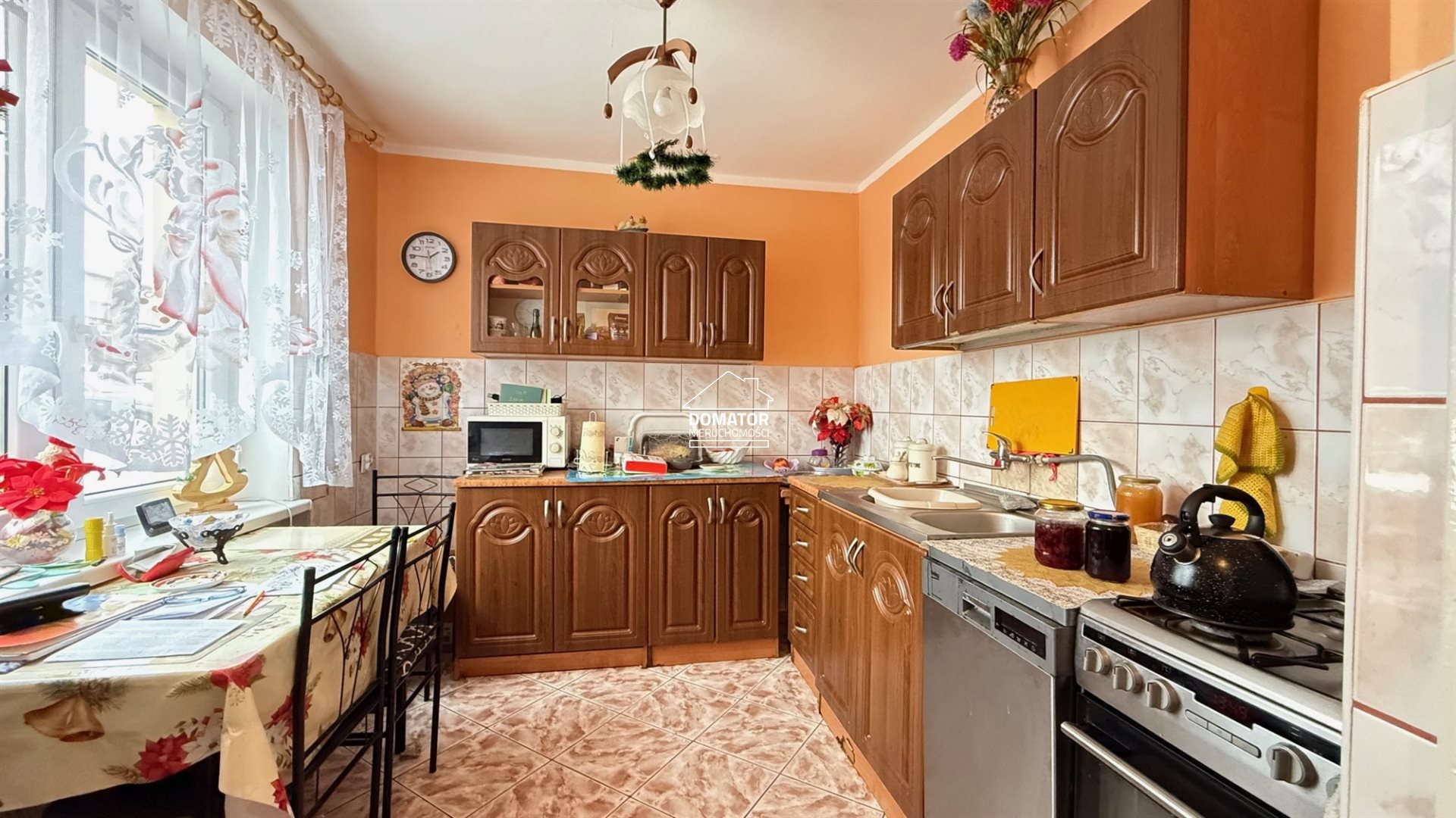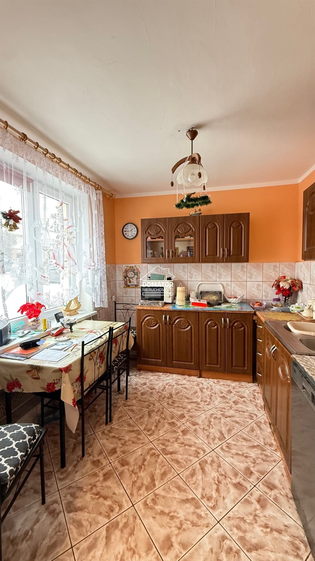 Dom dwukondygnacyjny, posiadający dwa niezależne wejścia do dwóch mieszkań, jednak połączonych ze sobą. Na parterze znajduje się przestronny salon, pokój, kuchnia, łazienka oraz kotłownia i pomieszczenie gospodarcze. Na piętrze usytuowane są trzy pokoje, przedpokój, łazienka z prysznicem oraz duży balkon. Okna PCV. Budynek ocieplony. Strop betonowy, dach płaski pokryty papą termozgrzewalną. Na działce znajduje się pomieszczenie gospodarcze o pow. 50 m2. Dom ogrzewany piecem z podajnikiem na ekogroszek. Działka częściowo zagospodarowana.