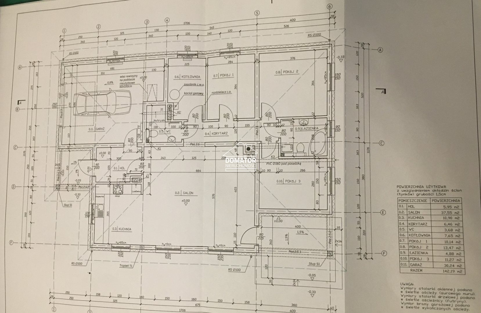 Powierzchnia użytkowa 104,30; powierzchnia całkowita 142,19;