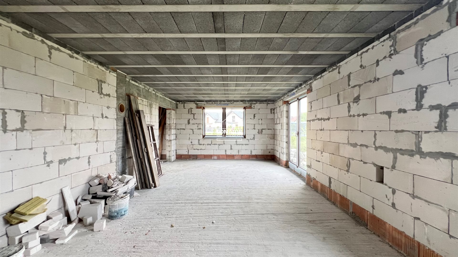 Na sprzedaż parterowy dom z użytkowym poddaszem położony w ładnej i spokojnej okolicy w miejscowości Kruszyn Krajeński, w gm. Białe Błota. Dom w stanie surowym zamkniętym o powierzchni całkowitej 166 m2 oraz użytkowej ok. 100 m2 na działce o pow. 739 m2.