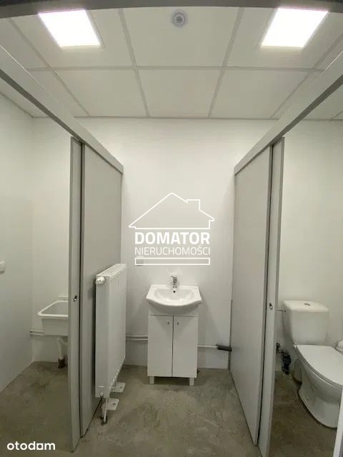Do wynajęcia hala/pomieszczenie handlowo-magazynowe o powierzchni ok 210m2, w tym 45 m2 pomieszczenie biurowe, socjalne z WC. Obiekt wykończony dużymi, przeszklonymi witrynami, zbudowany z płyt warstwowych PIR 12 cm. Bramy wjazdowe Wiśniowski o wymiarach 3,0x3,0. Teren wokół ogrodzony, monitorowany, utwardzony kostką, z miejscami parkingowymi. Ogrzewanie gazowe: w biurach kaloryfery, na halach nagrzewnice, podzielniki ciepła. Hala przylega do 3 innych hal w tym samym kompleksie. Hala ma wysokość 4,7m, ściany do 5,5 m w kalenicy z wydzielonymi pomieszczeniami biurowymi i socjalnymi. Czynsz najmu: 6090 zł + VAT + podatek od nieruchomości.