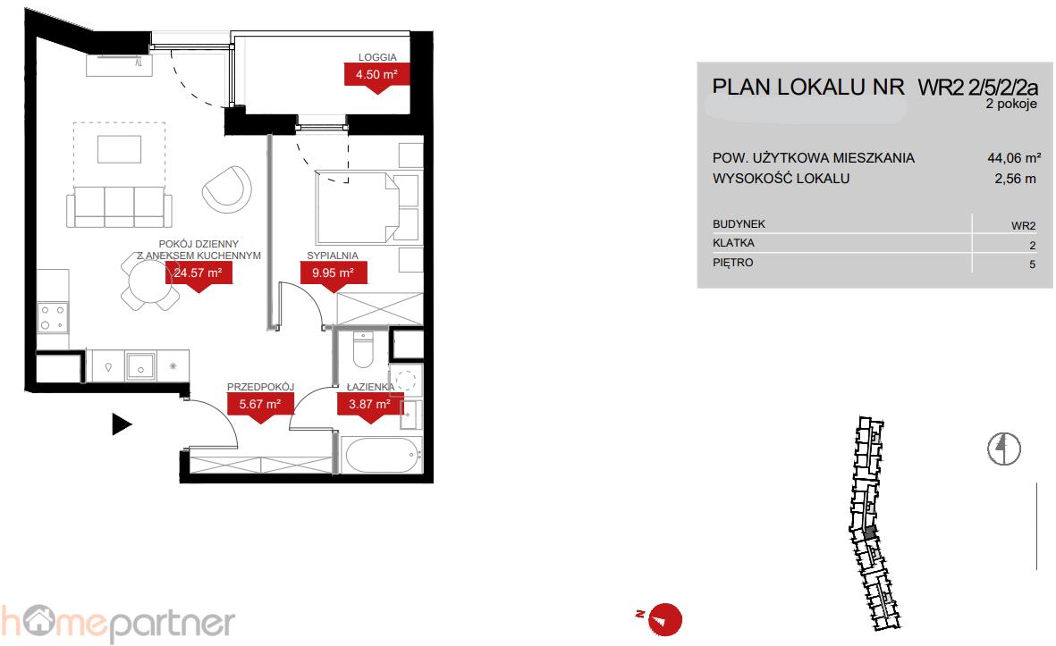 Do mieszkania przynależy loggia o powierzchni 4,50 m2