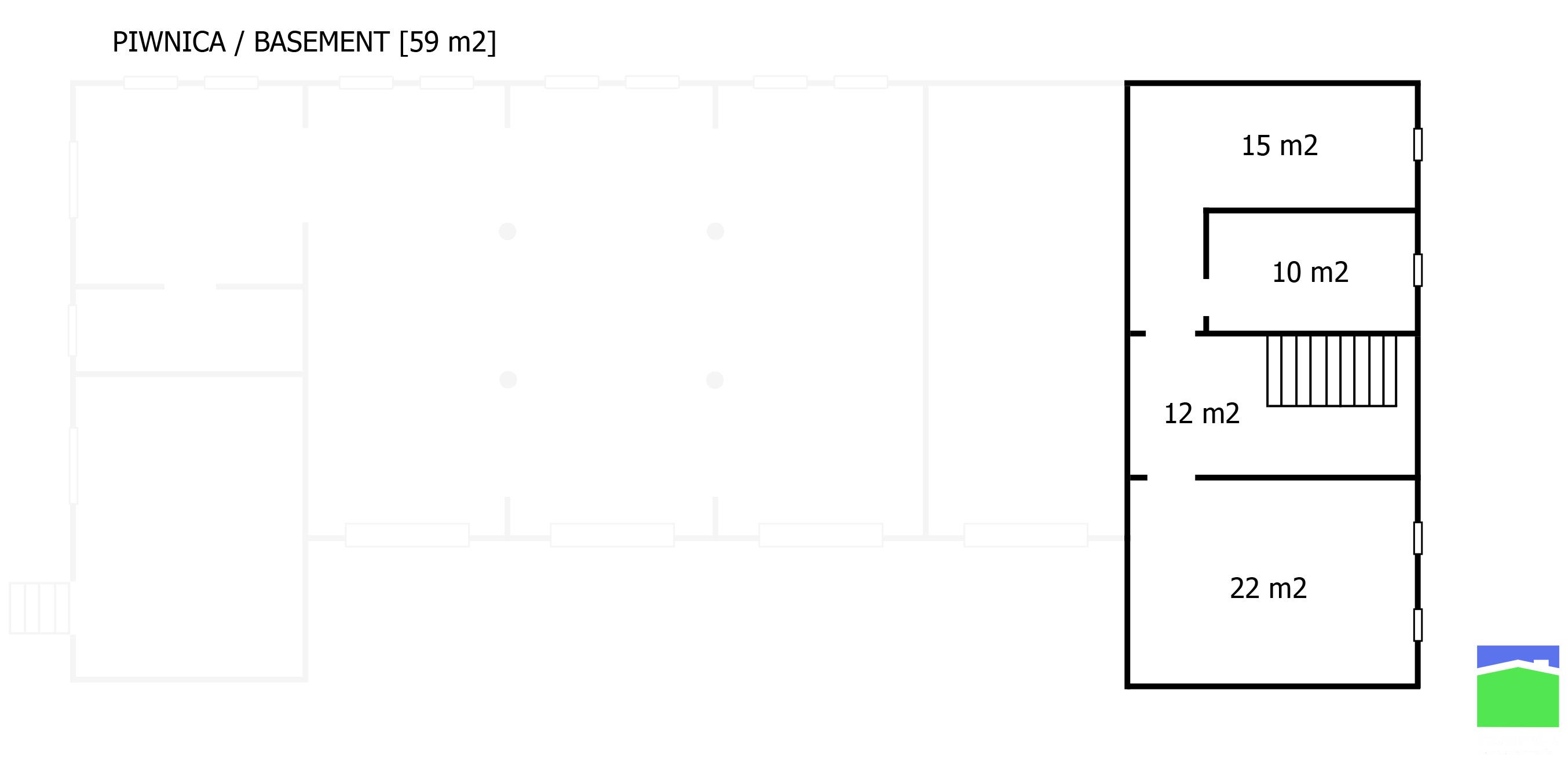 - piwnicę, w której znajduje się kotłownia /piec na gaz miejski/, pralnia i spiżarnia