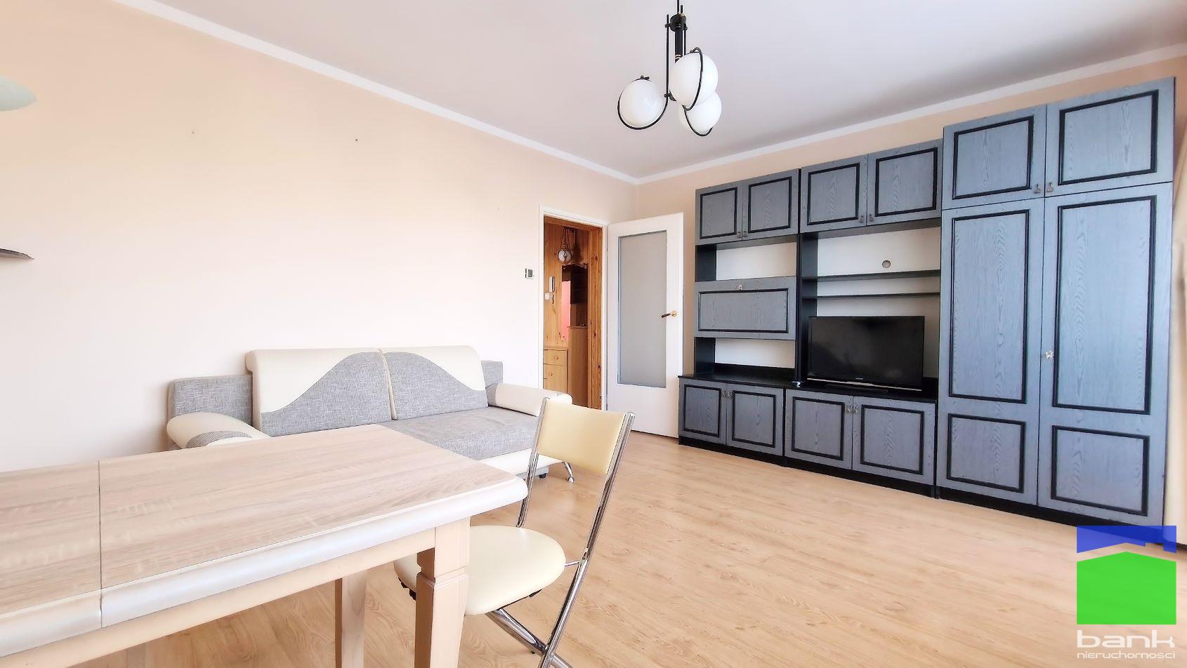 Pokój dzienny z wyjściem na balkon. Oddzielna kuchnia, ustawna sypialnia,