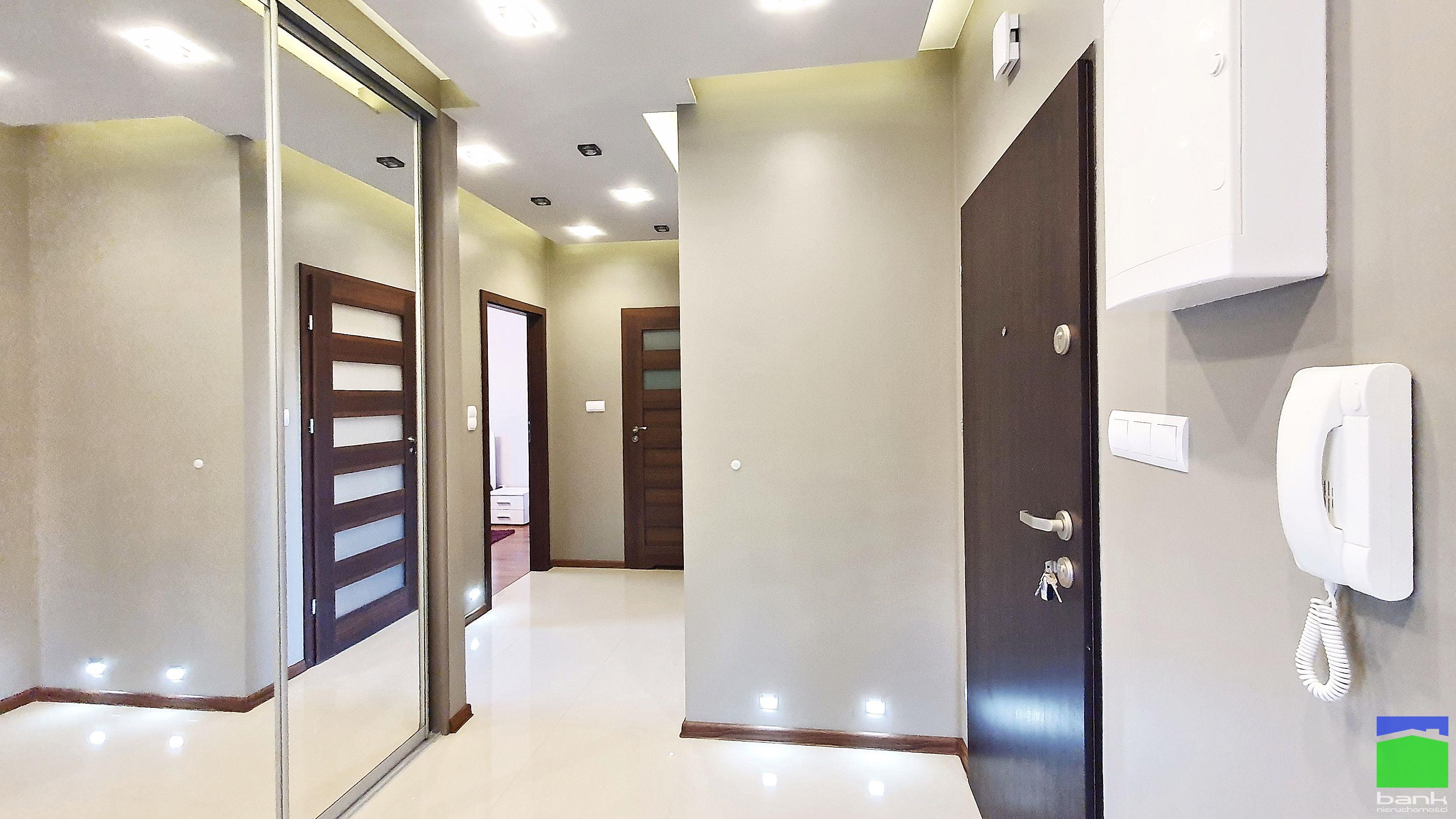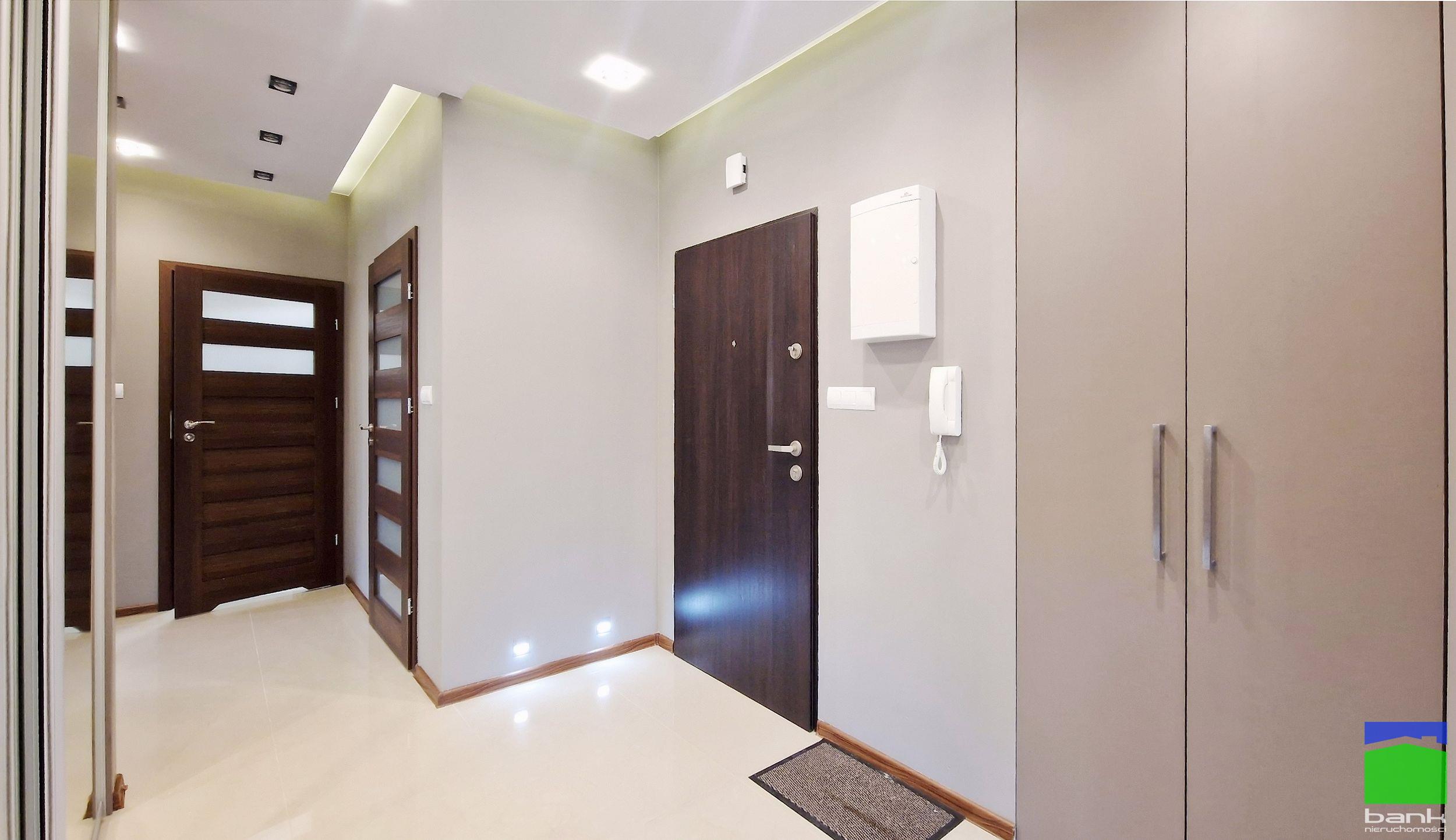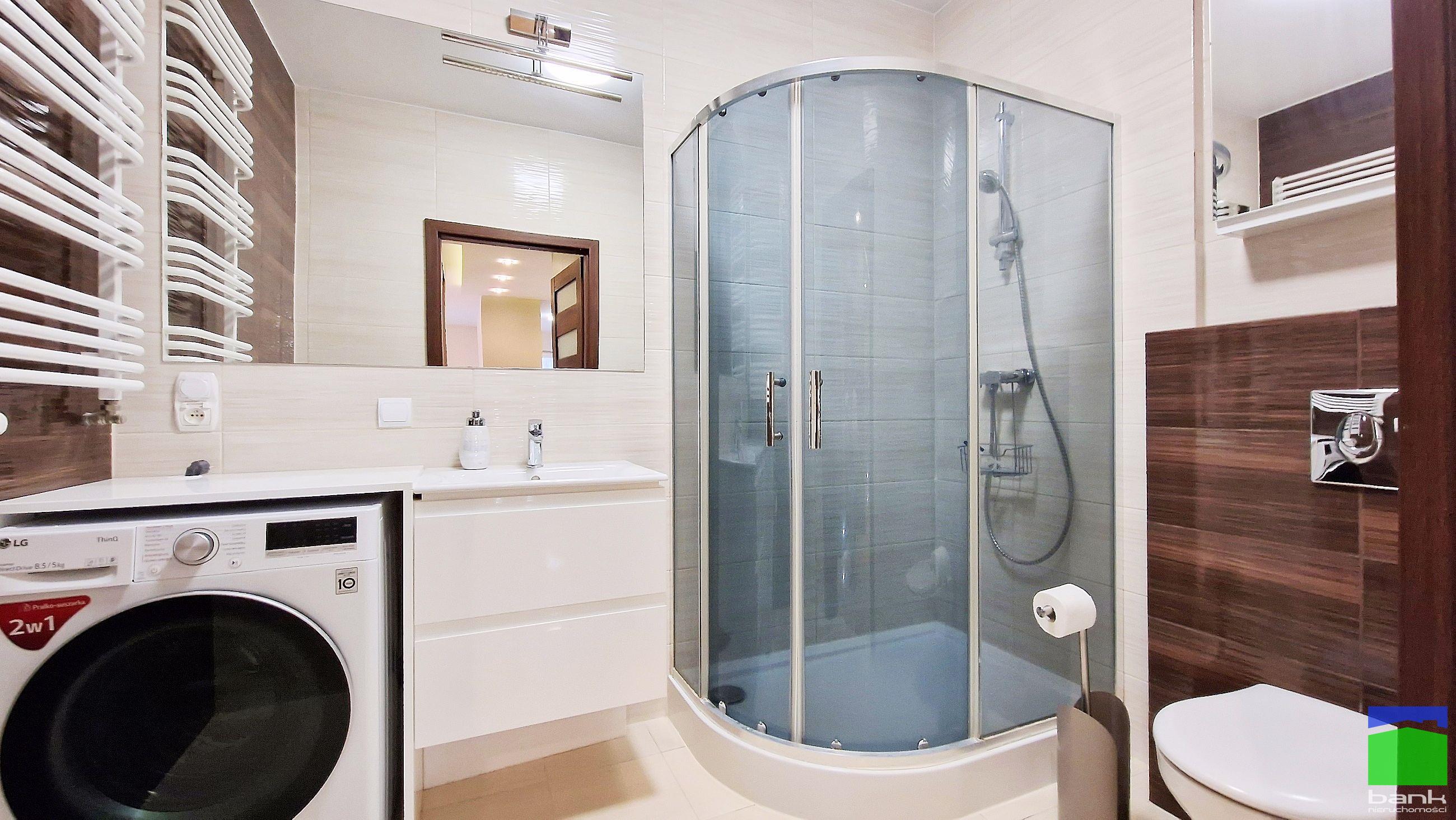 Łazienka z kabiną prysznicową. Garderoba w przedpokoju.