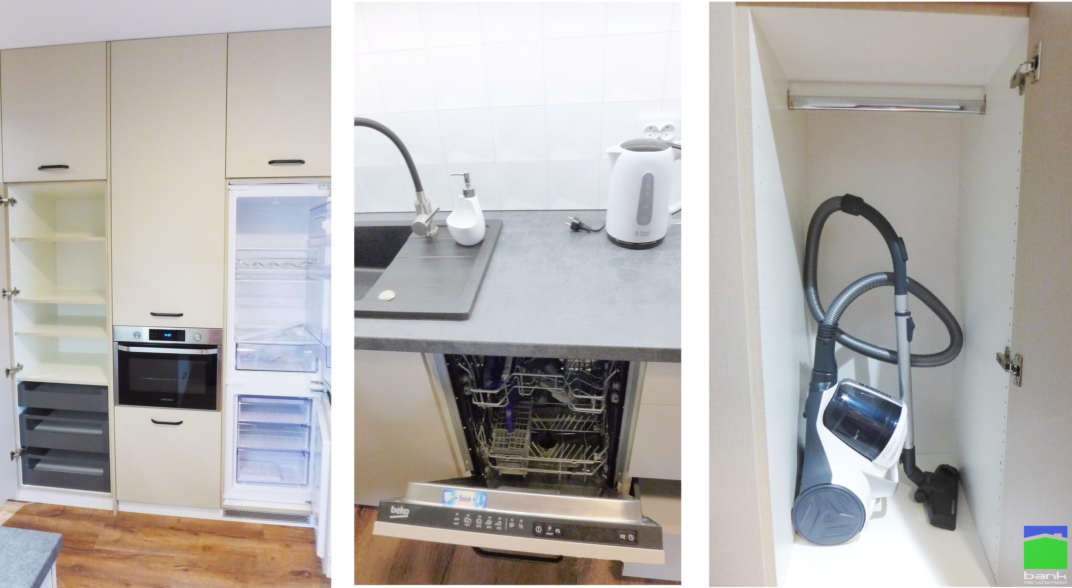 - AGD (zmywarka, piekarnik z f. mikrofali, lodówka w zabudowie, pralka)