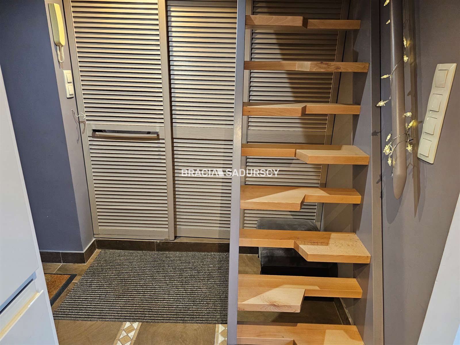 Strefa dzienna to idealne miejsce do relaksu - znajdziesz tu dużą, komfortową skórzaną sofę, telewizor oraz nowoczesne biurko barowe, które świetnie sprawdzi się zarówno do pracy zdalnej, jak i codziennych posiłków. Na antresoli urządzono przytulną przestrzeń sypialnianą z wygodnym, dużym łóżkiem, zapewniającą komfort i wyraźne oddzielenie strefy wypoczynku od części dziennej.