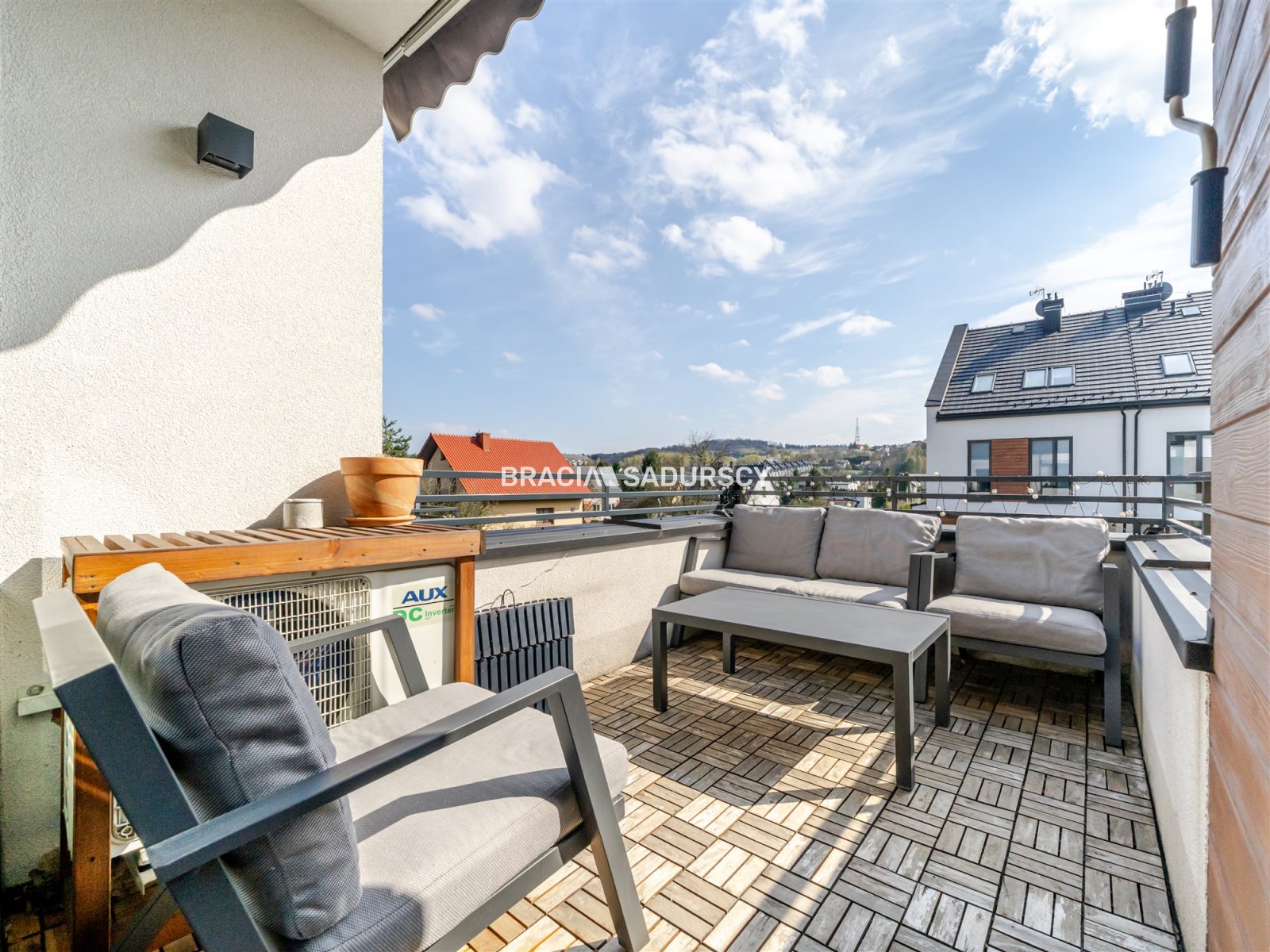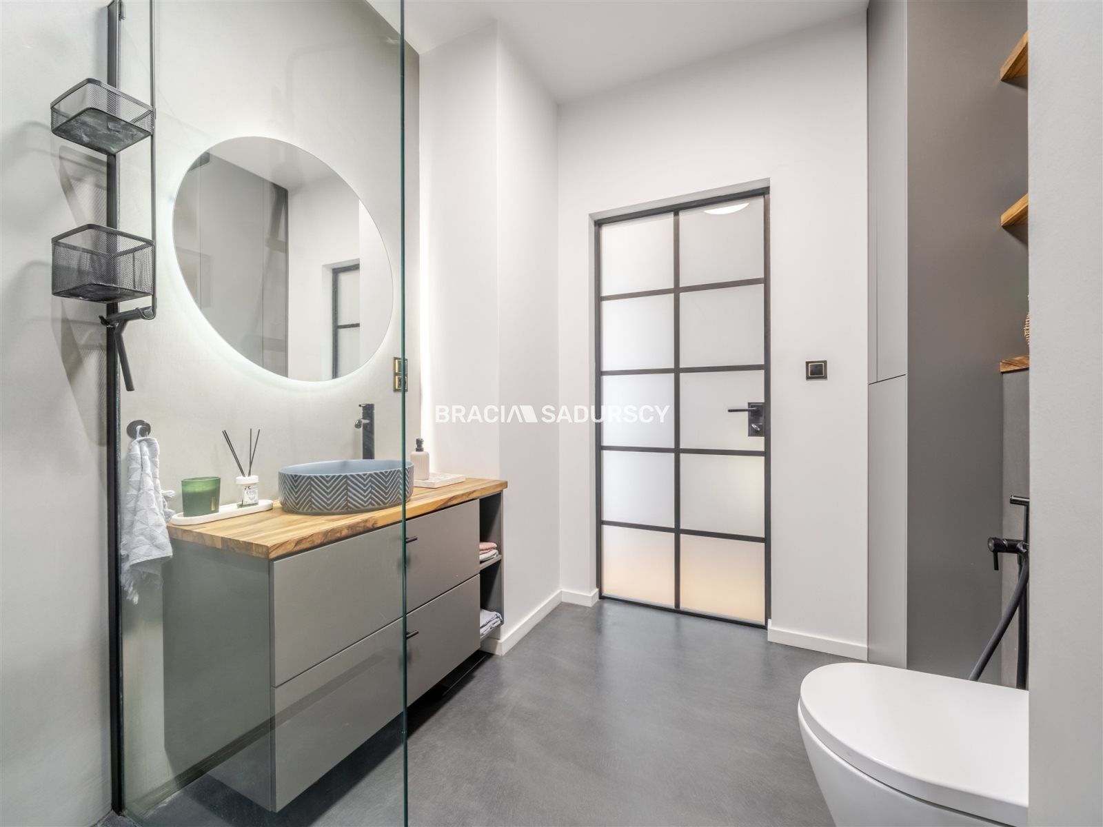 Wyższa kondygnacja stanowi strefę prywatną, sprzyjającą odpoczynkowi. Znajdują się tu trzy ustawne i jasne pokoje oraz przestronna, elegancka łazienka z ogrzewaniem podłogowym. Dodatkowym atutem jest dostęp do strychu, który można zagospodarować według własnych potrzeb. W holu oraz sypialni głównej zamontowano klimatyzatory.