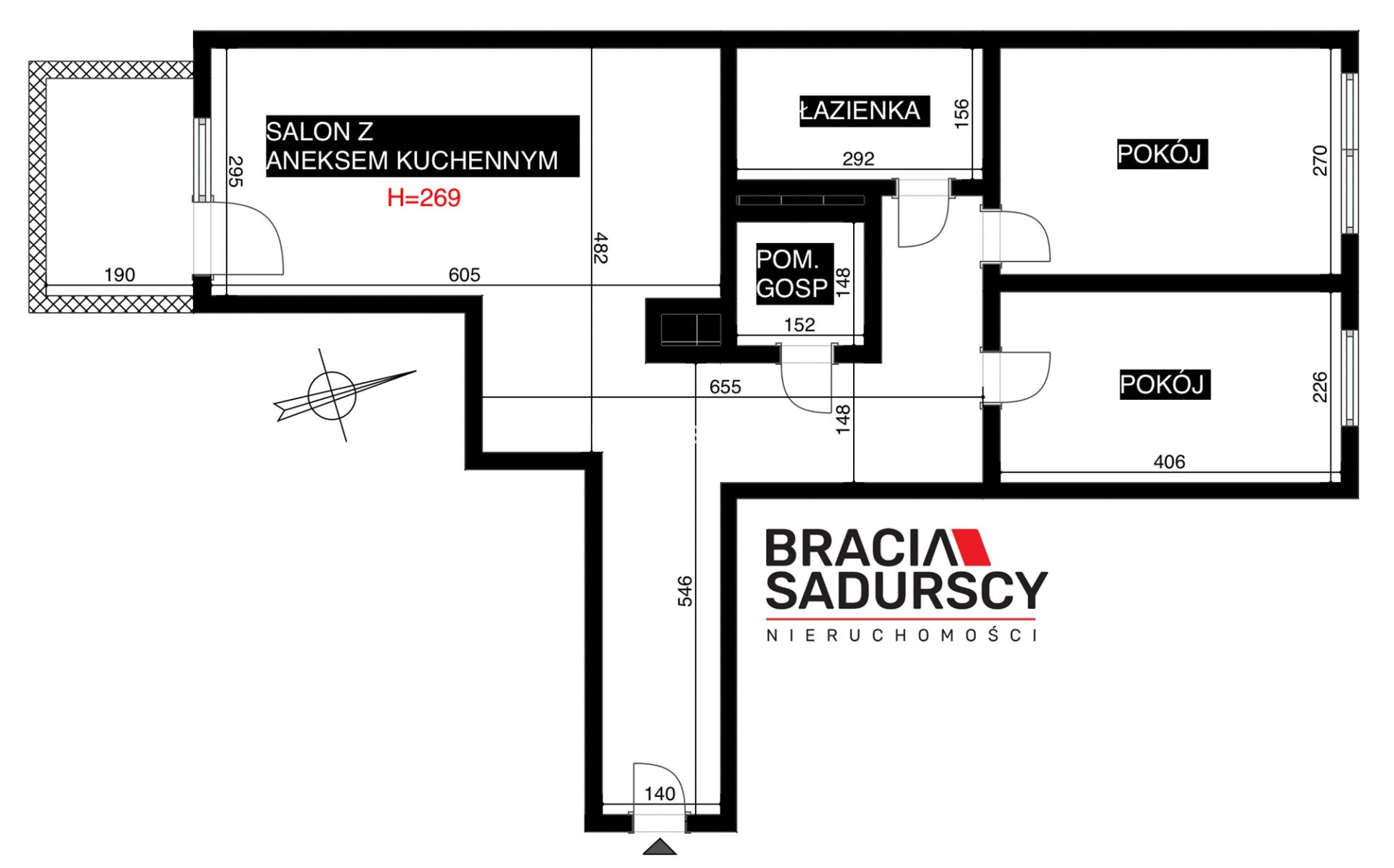 3 pokoje - w tym przestronny salon z aneksem kuchennym i wyjściem na balkon