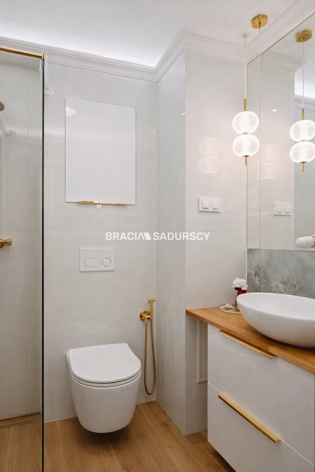 podłogi: parkiet (pokoje), gres wysokiej jakości (kuchnia, łazienka, przedpokój)
