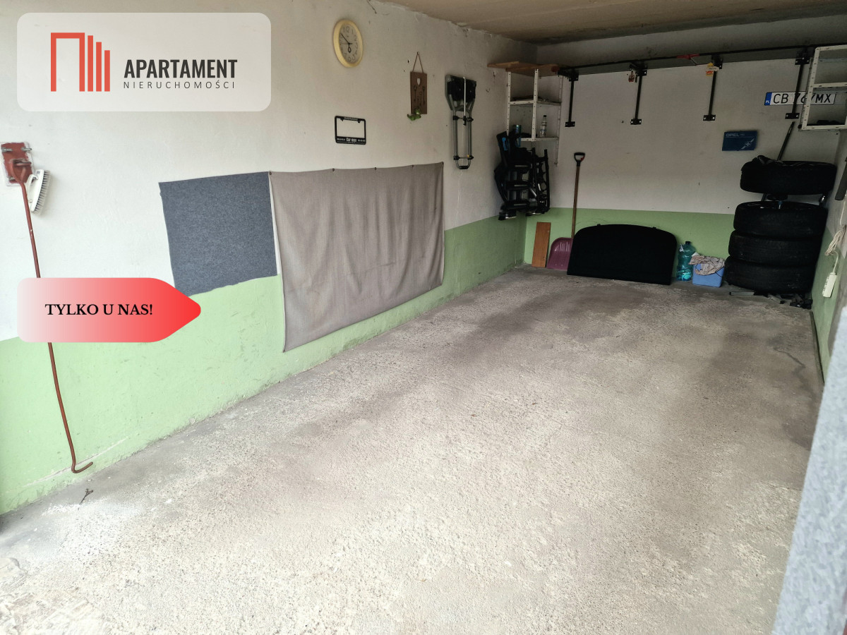 Garaż posiada wygodny dojazd drogą wyłożoną kostką brukową, co zapewnia komfort użytkowania przez cały rok. Nieruchomość znajduje się w dobrze skomunikowanej i spokojnej okolicy.