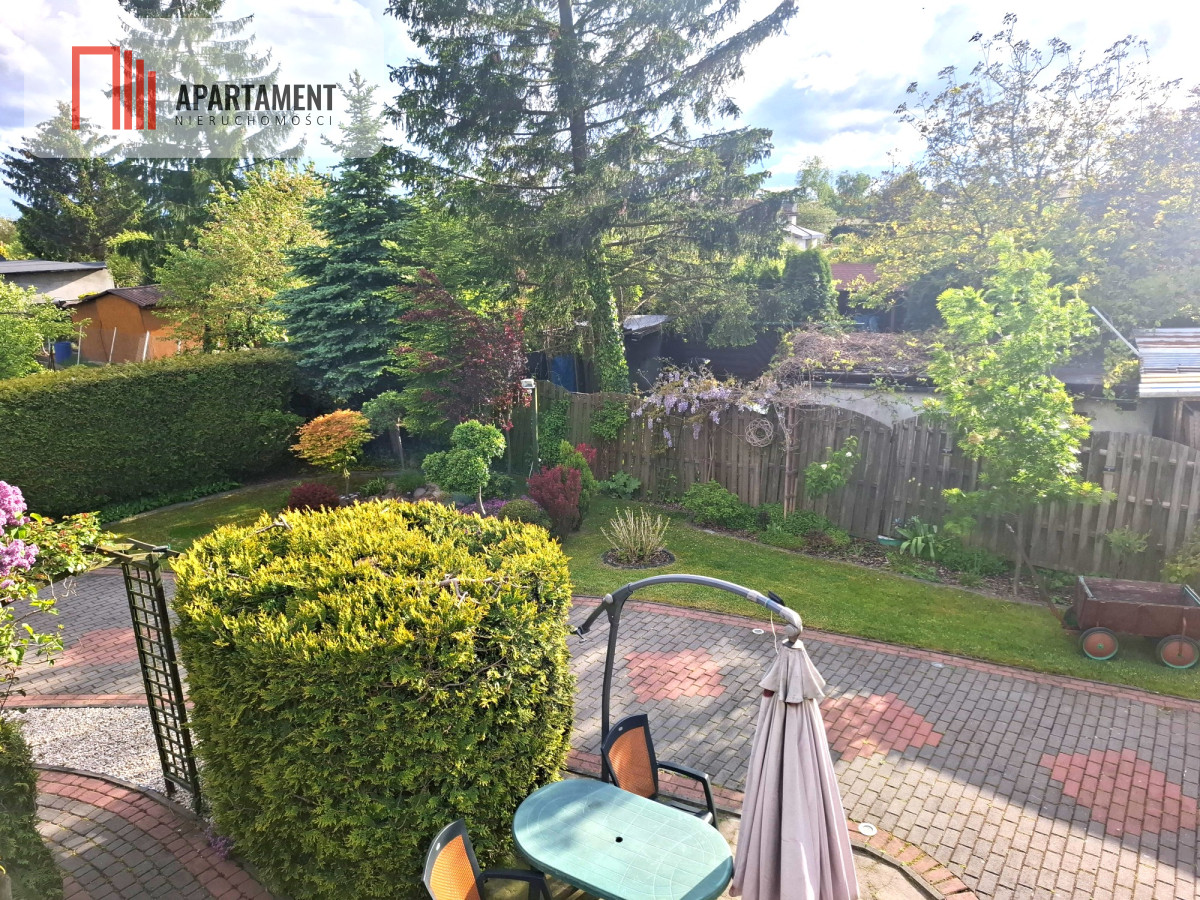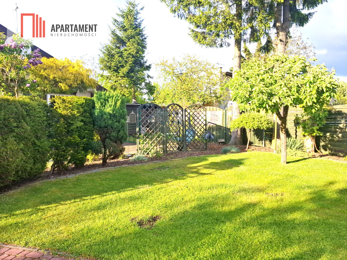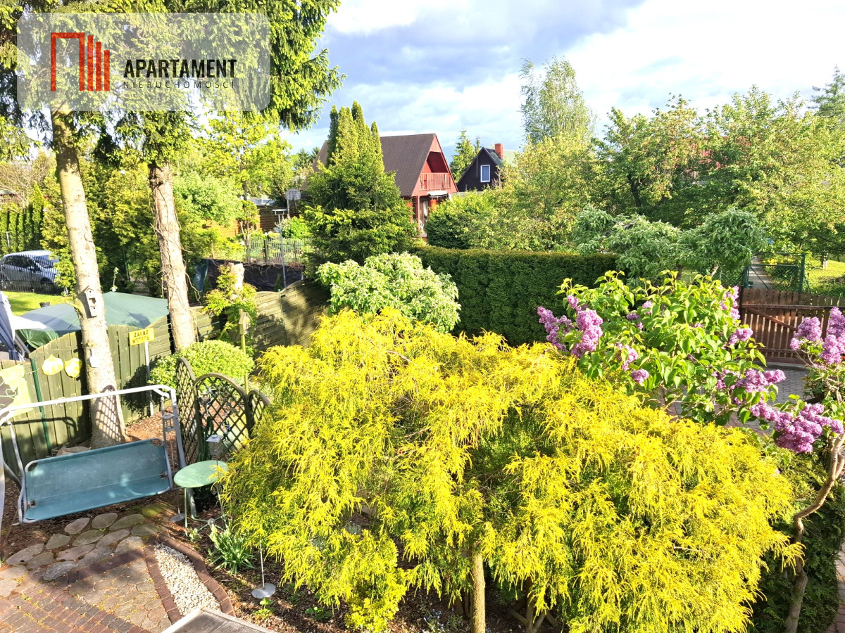 Na działce pięknie zagospodarowany ogród z licznymi nasadzeniami.