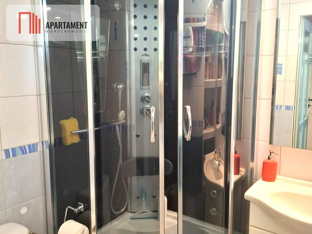 Łazienka z kabiną prysznicową .
