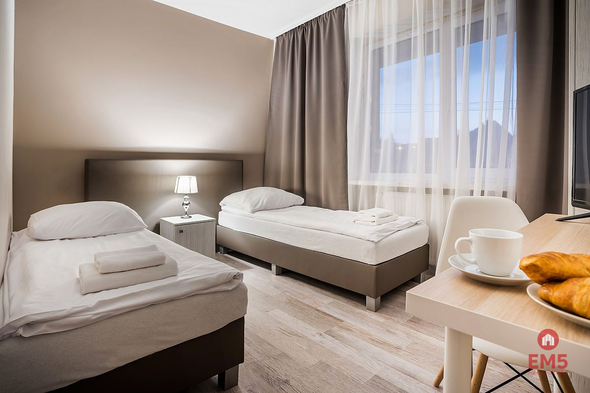 W lokalu znajdują się dwie łazienki. Budynek składa się z sześciu nieprzechodnich, zamykanych na klucz pokoi na piętrze.
