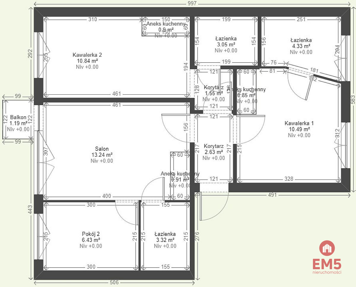 - 2 kawalerki i mieszkanie 2 pokojowe.