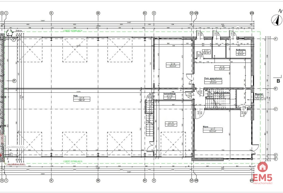 - wysokość hali głównej 5 m