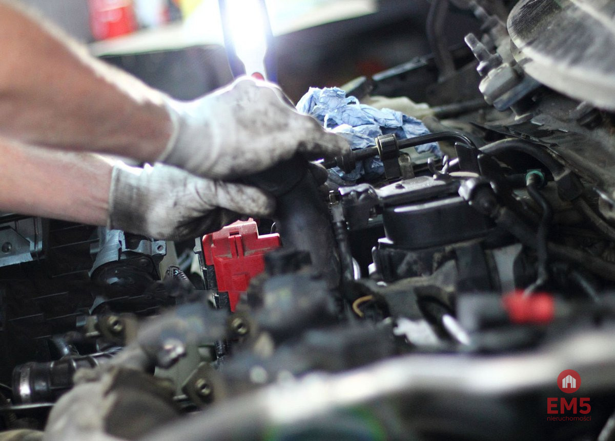 - 3 wysokie bramy garażowe, 2 kanały serwisowe, suwnica