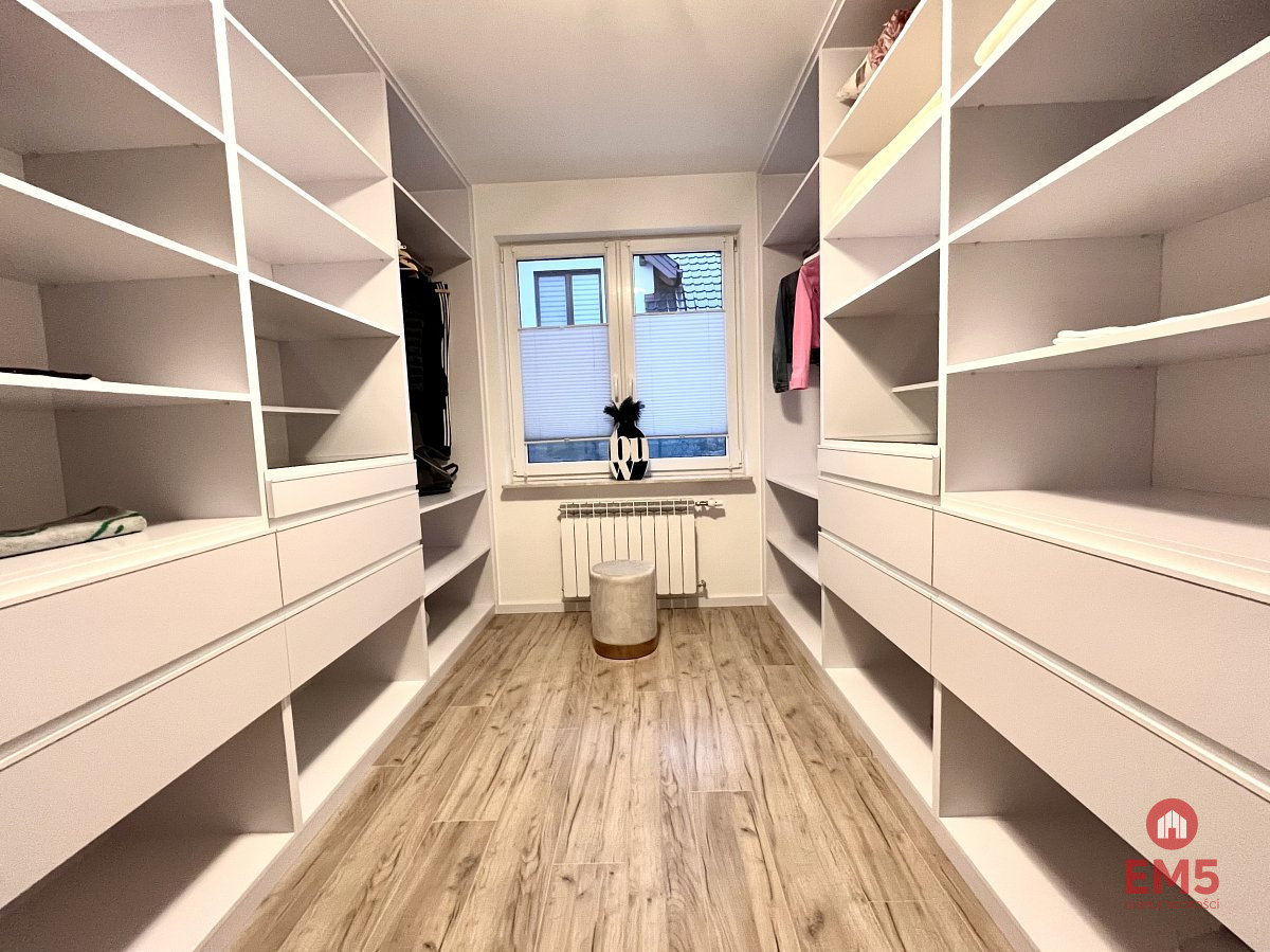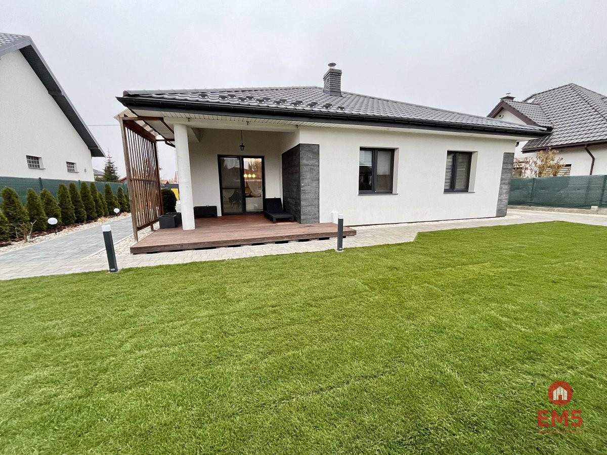 Najwyższy standard wykończenia i nowoczesne udogodnienia: Dom został wybudowany z wysokiej jakości materiałów z dbałością o każdy detal. Wyposażony jest w nowoczesne systemy, które zapewniają komfort i niskie koszty eksploatacji: Klimatyzacja: Zapewnia przyjemny chłód w upalne dni. Ogrzewanie podłogowe: Gwarantuje komfort cieplny w całym domu. W pełni wyposażona kuchnia: Nowoczesne i wysokiej jakości sprzęty AGD (lodówka, piekarnik, płyta indukcyjna, zmywarka, okap) są gotowe do użytku.Stylowe meble: Dom jest w pełni umeblowany z dbałością o estetykę i funkcjonalność.