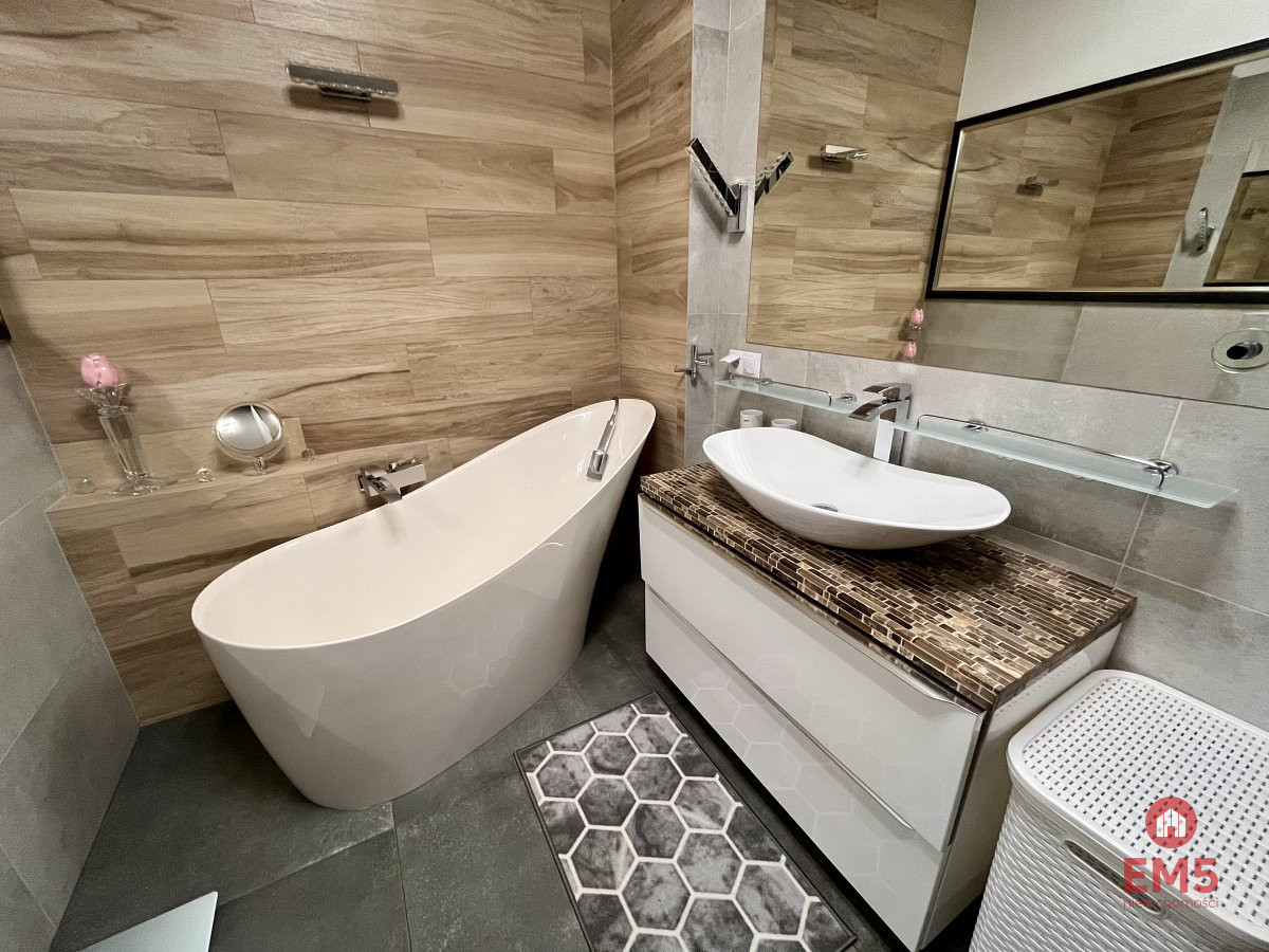 - Nowoczesna łazienka: Elegancka łazienka wyposażona zarówno w wygodną wannę, jak i nowoczesny prysznic, zapewni komfort użytkowania wszystkim domownikom.