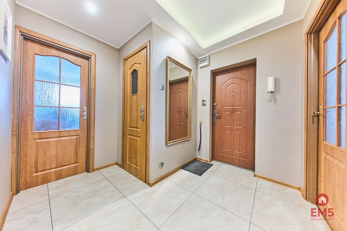 -Przestronny korytarz z dużą, elegancką i pojemną szafą.