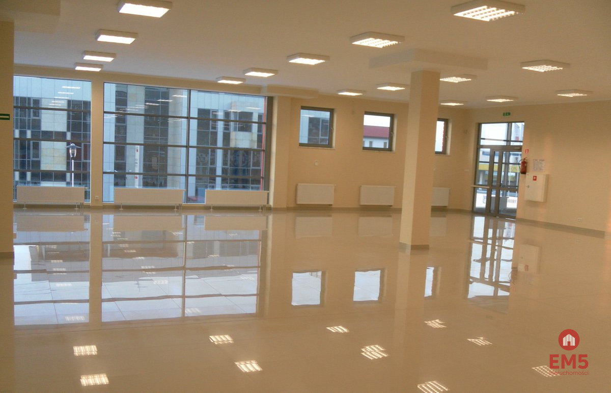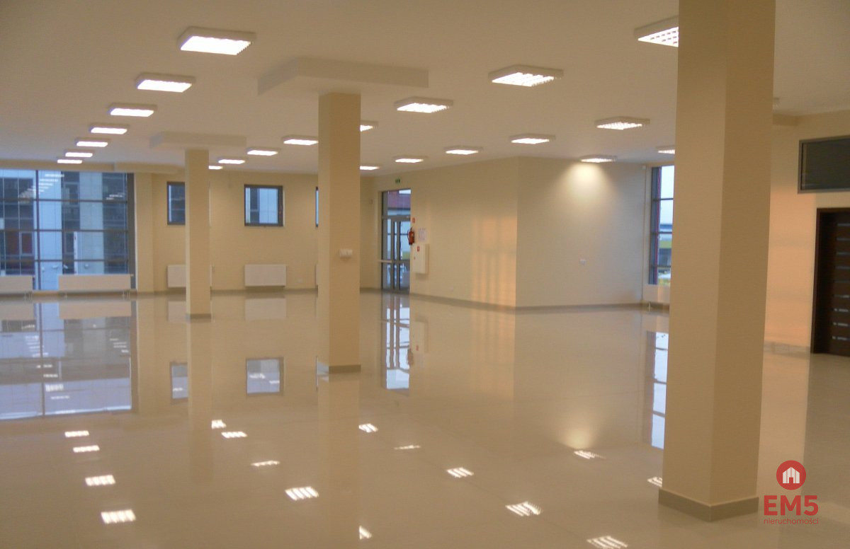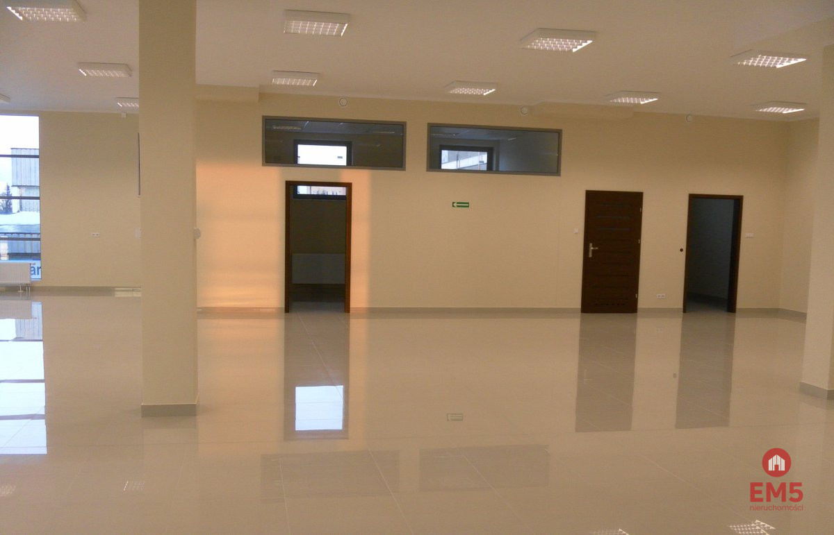 Oferowana przestrzeń jak i cały budynek wolnostojący mają 1900m2 powierzchni. Stan budynku, infrastruktury na działce i samej działki jest celujący! Znajduje się on przy głównej ulicy, wejścia do budynku są od frontu, całość można objechać dookoła cieżarówką. Budynek ma dwa poziomy: parter i 1 piętro. Drzwi wejściowe przeszklone, dwuskrzydłowe, automatyczne. Duże witryny od frontu budynku. Przestrzenie w budynku takie jak sale sprzedaży, zaplecza, łazienki, klatki schodowe są w stanie celującym i nie wymagają odświeżenia. Oświetlenie sal sprzedaży najwyższej jakości. Można wynająć każde pół piętra jako osobna przestrzeń oddzielona ścianą z własnym wejściem z ulicy. Każda część posiada dużą salę sprzedaży, własną łazienkę z WC, kilka pokoi pełniących funkcje zaplecza, socjalne itp. Każda część posiada również szlaki komunikacyjne dostaw od tyłu budynku. W budynku są dwie windy, do każdej wejdzie europaleta. Od tyłu budynku są 2 bramy automatyczne o wysokości ok. 3,3m do przyjmowania dostaw.
