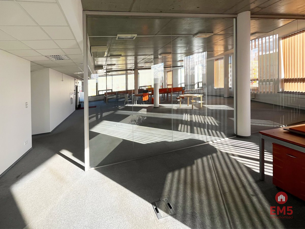- Otwarta przestrzeń z przeszklonymi podziałami