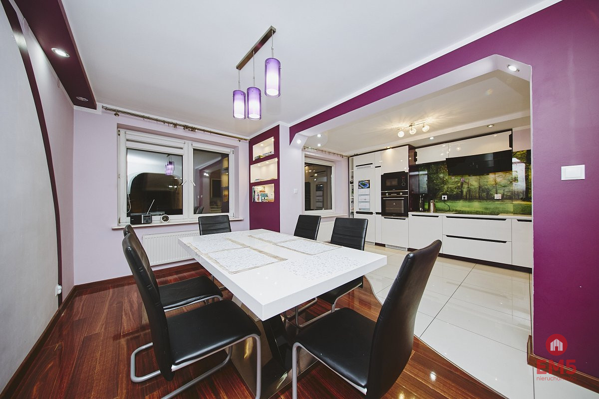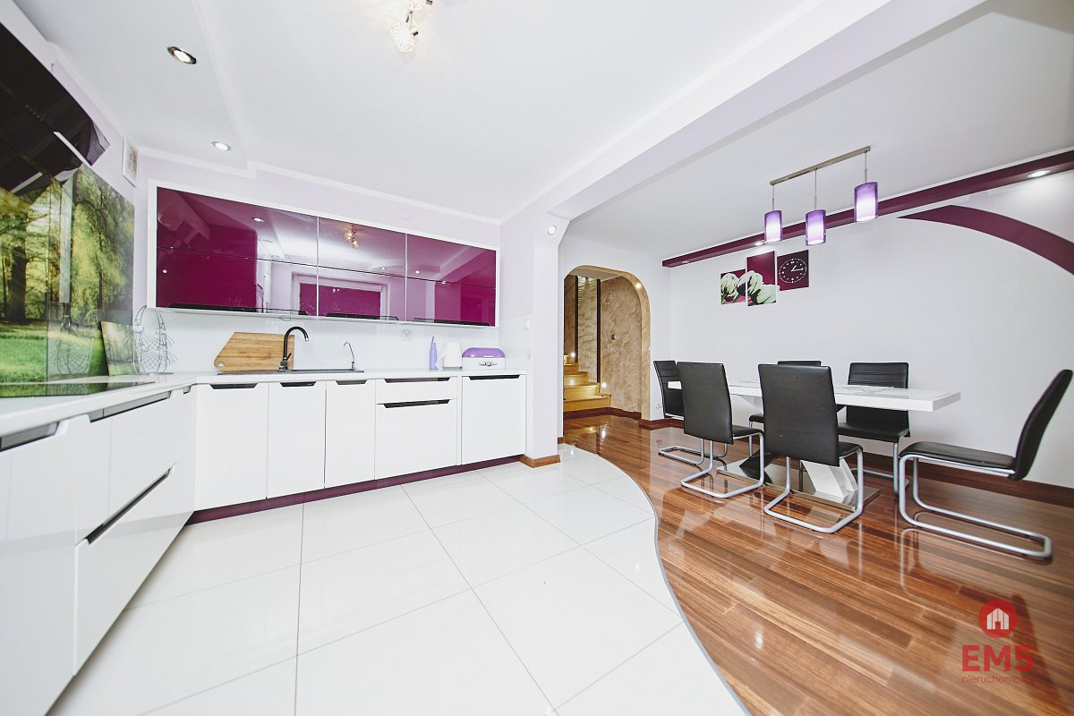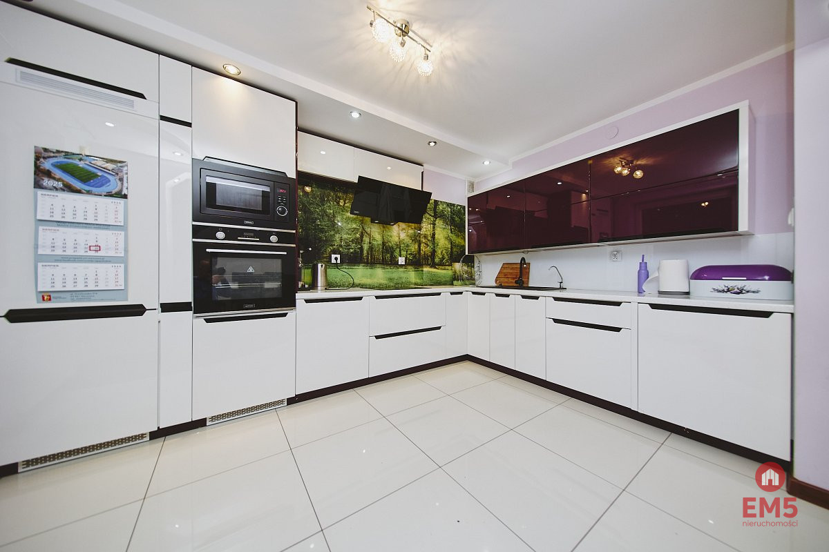 - przestronna kuchnia z pełną zabudową i sprzętem AGD (lodówka, zmywarka, piekarnik, mikrofalówka),