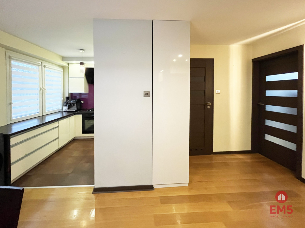 Układ pomieszczeń: - duży otwarty salon z połączoną kuchnią, jadalnią, przedpokojem - 3 odrębne niezależne pokoje - łazienka z wanną - ładny aneks kuchenny w pełni wyposażony - wyjście na balkon - przypisane pomieszczenie w piwnicy ok 4 m2 - bokówka ogólnodostępna - przypisane miejsce parkingowe , miejsce za szlabanem