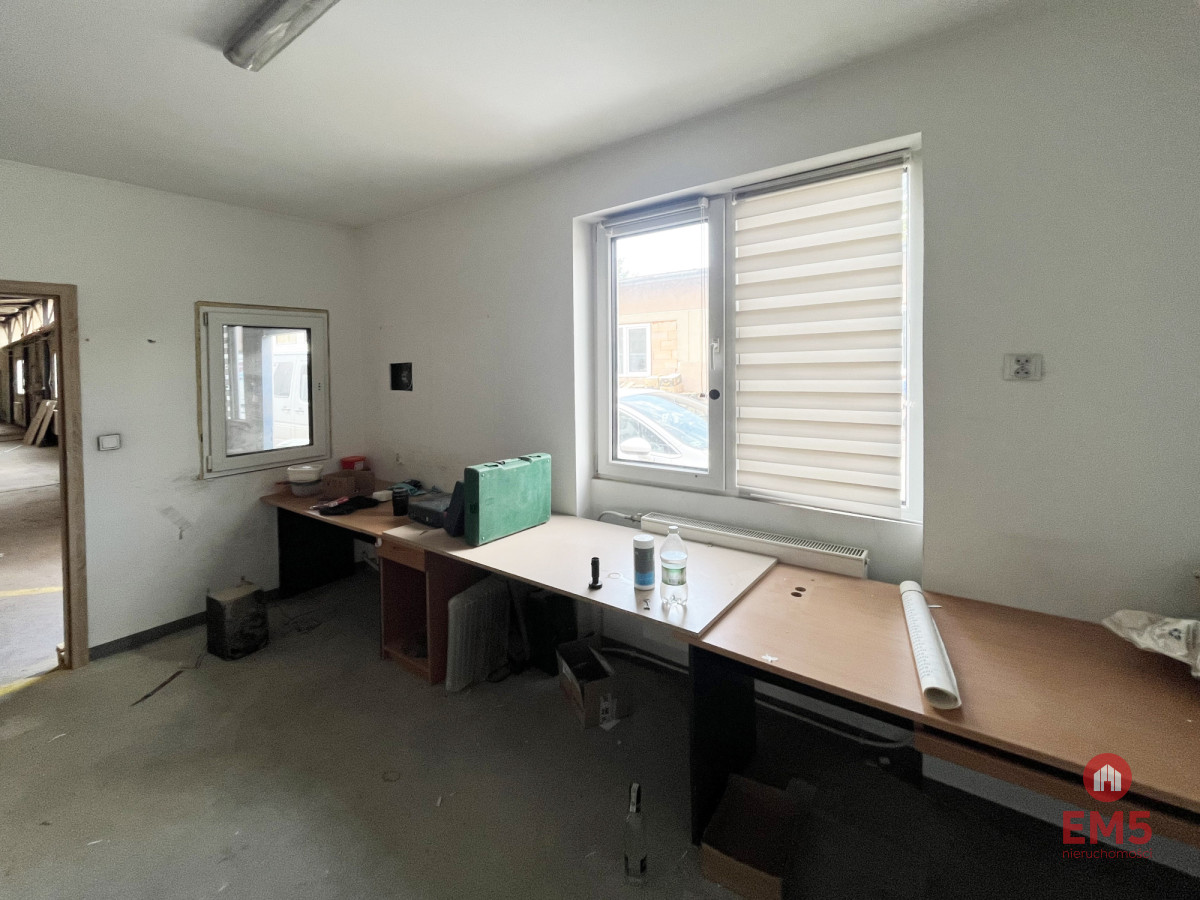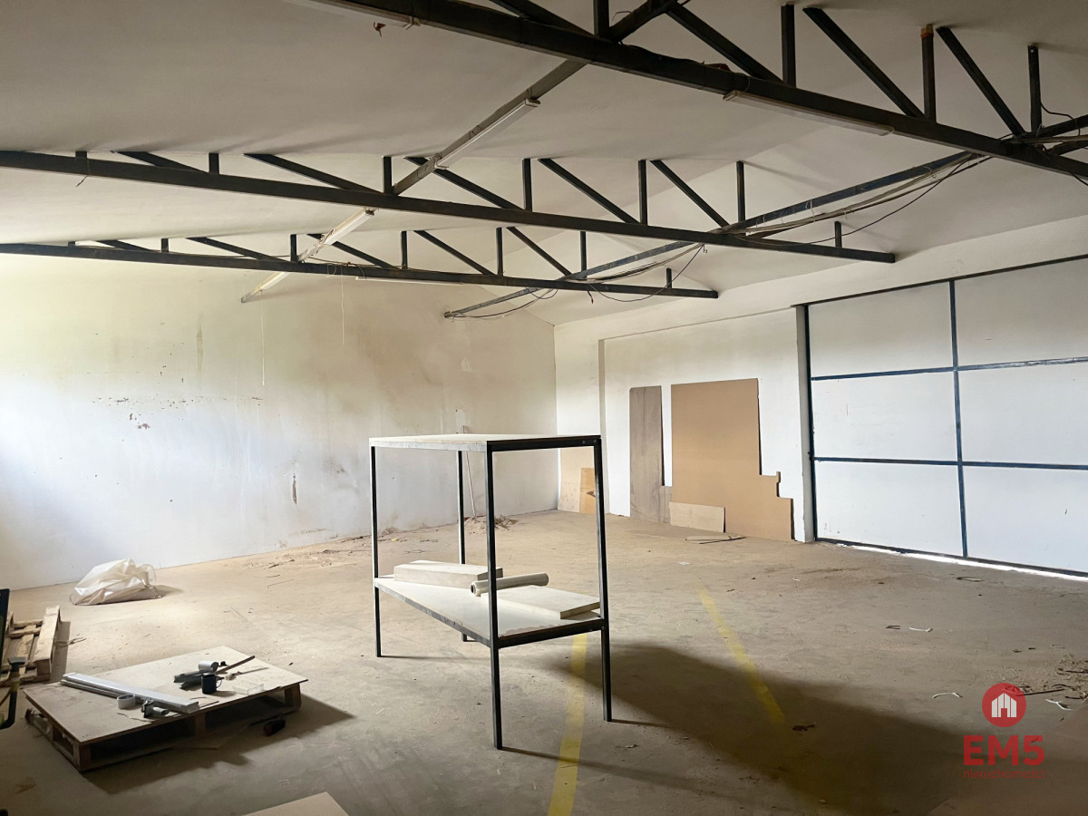 Magazyn - Produkcja - Stolarnia - Warsztat - Pow. 320 m2. - Wysokość 3,5 m - 4 m, - Ogrzewanie ( grzejniki, piec na opał stały) - Dwie bramy uchylne : 3 x 4m, 4 x 4m - Gniazda siłowe- duża moc przyłączeniowa prądu - Wydzielone pomieszczenia na biuro, socjal, toaleta - Monitoring, alarm, wentylacja - Podjazd dla aut ciężarowych, Tir - Swobodny parking