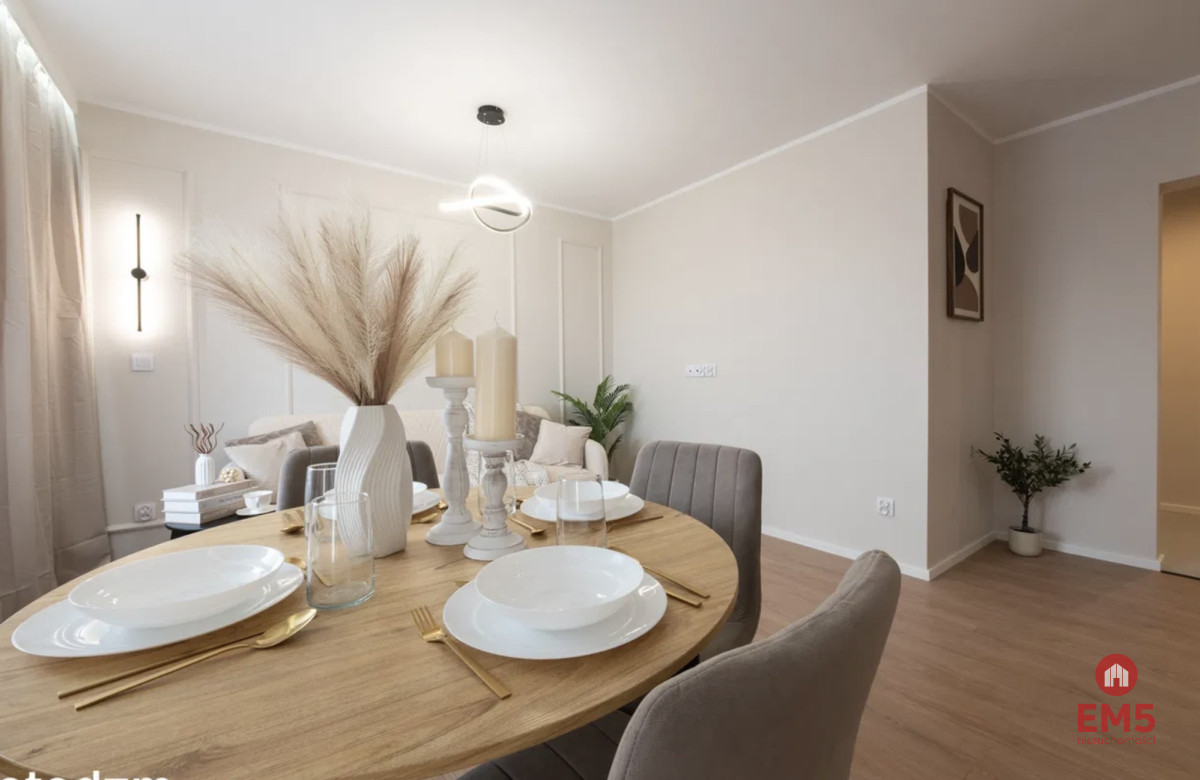 Stan mieszkania - do wprowadzenia się od zaraz! Mieszkanie po generalnym remoncie przeprowadzonym z głową. Wymienione wszystkie instalacje (elektryczna + wodno-kanalizacyjna),nowe tynki, ściany, podłogi, drzwi wewnętrzne. Cała zabudowa meblowa, wyposażenie i AGD - fabrycznie nowe, z gwarancją producenta. W cenie zostaje pełne wyposażenie kuchni: lodówka, płyta grzewcza, okap, piekarnik, zmywarka. Lokalizacja - złoty środek: Spokojna, zielona okolica idealna na spacery. Jednocześnie blisko centrum (ok. 10-15 min autem / komunikacją). W bezpośrednim sąsiedztwie: sklepy spożywcze, piekarnia, apteka, przychodnie, przedszkola, szkoły.