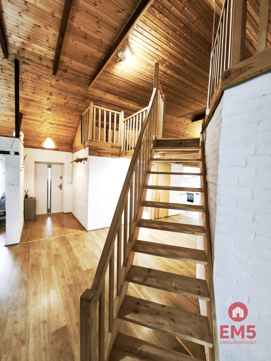 - przestronny salon z kominkiem i wyjściem na stylową antresolę,