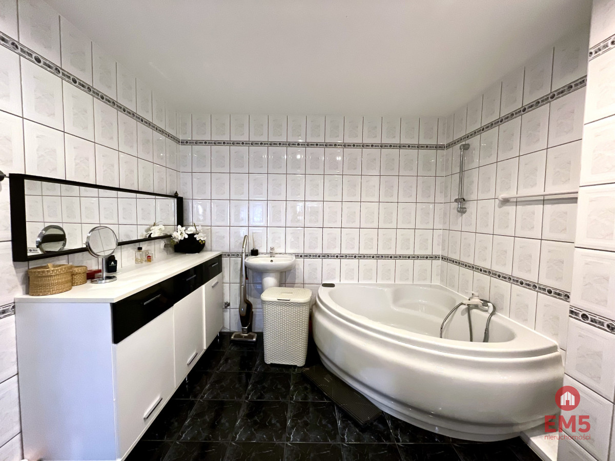 Dom posiada dużą, wygodną łazienkę oraz bardzo przestronną piwnicę, którą można z powodzeniem zagospodarować według własnych potrzeb. Może ona pełnić funkcję dodatkowej przestrzeni rekreacyjnej, biura, siłowni lub miejsca do przechowywania, co znacząco zwiększa funkcjonalność całego domu.