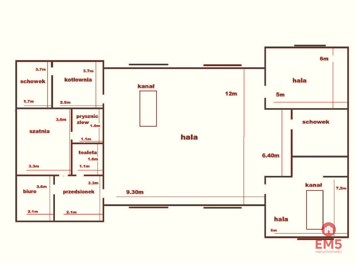 - Powierzchnia około 180 m2, wysokość 3,5 - 4 metry