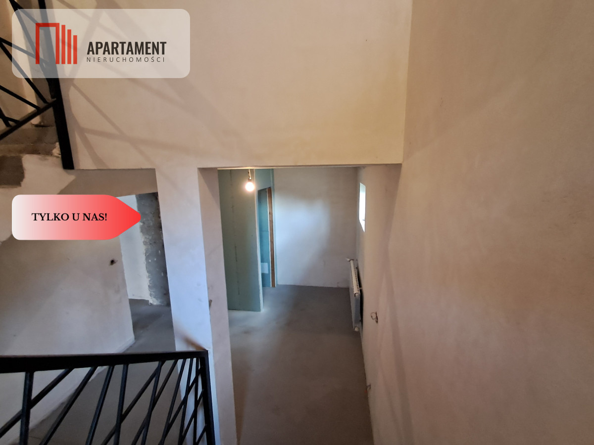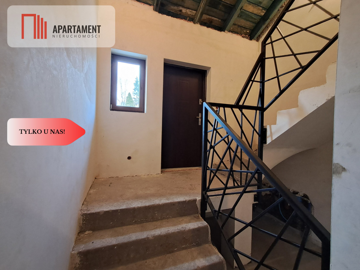 Funkcjonalny układ: 3 pokoje (w tym jeden z balkonem wykończonym deską kompozytową), kuchnia, łazienka, hol ze schodami (stalowa balustrada), kotłownia, toaleta oraz dodatkowe pomieszczenie do własnej aranżacji. Budynek po gruntownym remoncie — wymieniono wszystkie instalacje (elektryczne, hydrauliczne oraz CO z ogrzewaniem podłogowym w korytarzu i łazience). Wykonano nowe tynki i wylewki, odbudowano komin, wymieniono dach (blachodachówka) oraz rynny. Całość została ocieplona.