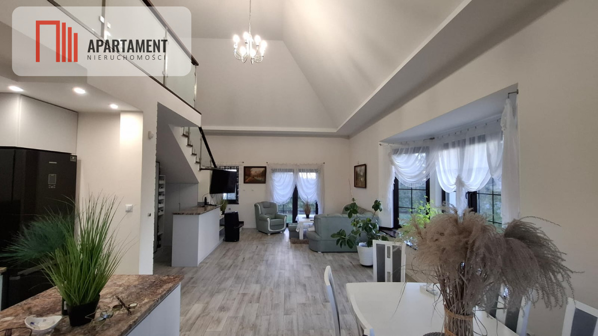 Dom ma powierzchnię ok 160 mkw., składa się z 5 ustawnych pokoi, przestronnego jasnego salonu z aneksem kuchennym i antresoli, dwóch łazienek.