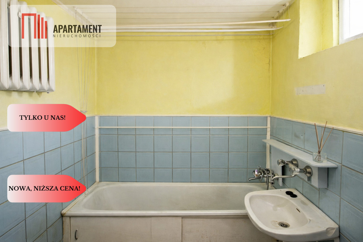 Mieszkanie gotowe do remontu, ale w stanie pozwalającym na zamieszkanie.