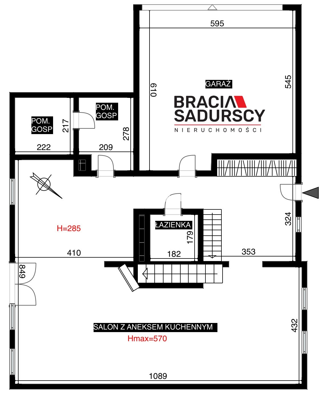 - open space - salon + kuchnia +jadalnia, do tego na parterze ubikacja garaż na 2 stanowiska, kotłownia, pralnia, pomieszczenie gospodarcze