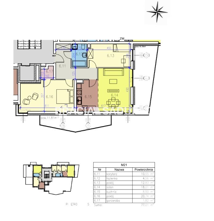 Przedmiotem ogłoszenia jest 3 pokojowe mieszkanie o pow.77,01m2 zlokalizowane na piątym piętrze (5/5).