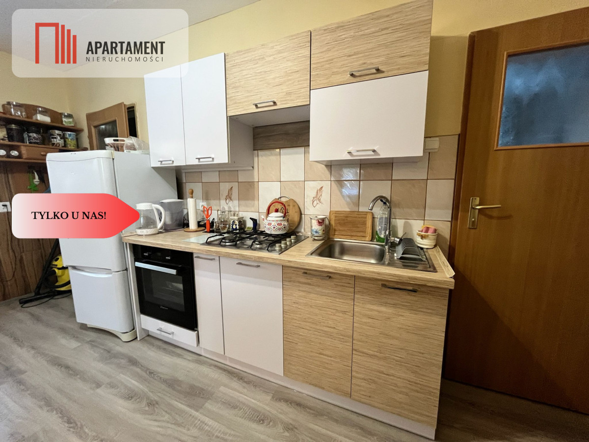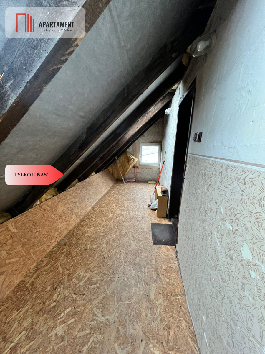 Mieszkanie przeszło niedawno remont, dzięki czemu jest gotowe do zamieszkania. Łazienka była remontowana w ubiegłym roku. Do mieszkania przynależy garaż oraz piwnica, co zapewnia dodatkową przestrzeń do przechowywania. Dodatkowym atutem jest użytkowy strych, na którym znajduje się pokój - idealny jako sypialnia. Mieszkanie ogrzewane jest piecem na drewno.