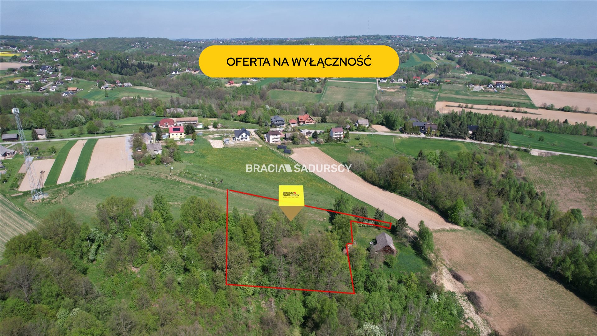 Działka rolna z drewnianym domem w Nowej Wsi, gm. Dobczyce