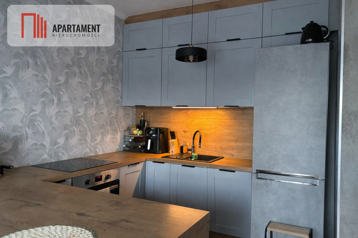 Układ mieszkania: - kuchnia z salonem i z wyjściem na balkon - dwa oddzielne pokoje - łazienka - przedpokój. Do mieszkania przynależy również komórka lokatorska, która zapewnia dodatkową przestrzeń do przechowywania.