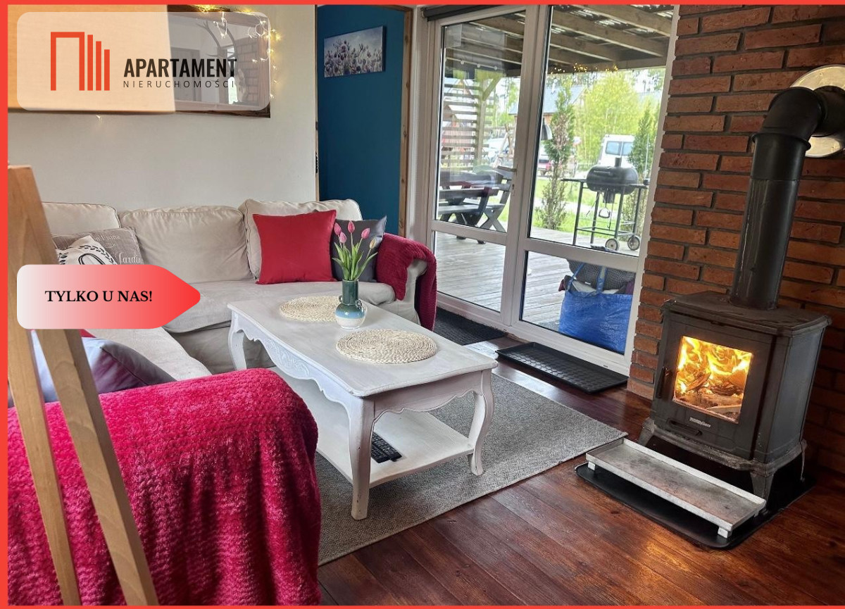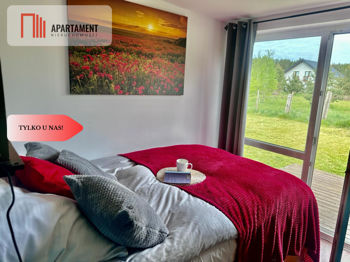 Domek z 2017 roku, jest to nowoczesny styl budowy w oparciu o najlepszej jakości materiały wykonawcze. - ocieplenie wełna - dom jest typu termos z racji na porządne i grube ocieplenie ścian jak i podłóg - w środku karton-gips - taras ok. 30m2 wraz z meblami tarasowymi - kominek - duże okna, by móc podziwiać piękne widoki za oknem - domek w pełni urządzony i wyposażony - balia przy domku - miejsce na parking - miejsca na ognisko - wiata na drewno Domek o wymiarach 5x7m2 - parterowy - duży salon z aneksem kuchennym - dwie sypialnie - łazienka z kabiną prysznicową