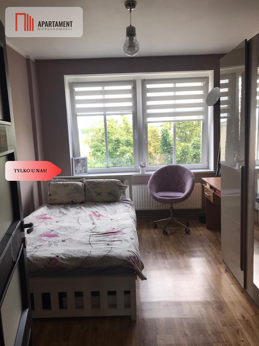 Rozkład pomieszczeń: - przestronny salon, - osobna, duża kuchnia, - 3 sypialnie, - łazienka, - garderoba. Do mieszkania przynależy piwnica oraz dostęp do strychu.