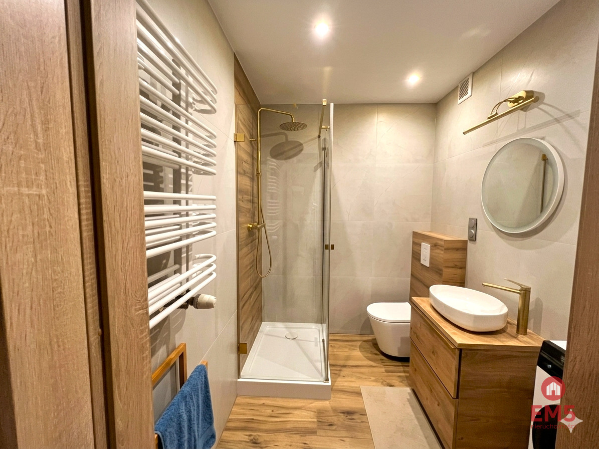 W skład nieruchomości wchodzą 2 oddzielne pokoje, salon z aneksem kuchennym i dużym balkonem, łazienka z prysznicem. Wnętrze jest dwustronne, bardzo ciepłe i słoneczne. Przestrzeń została zaprojektowana tak, aby każdy członek rodziny znalazł swój kąt - od wspólnych posiłków w salonie po spokojną naukę w pokojach dziecięcych.