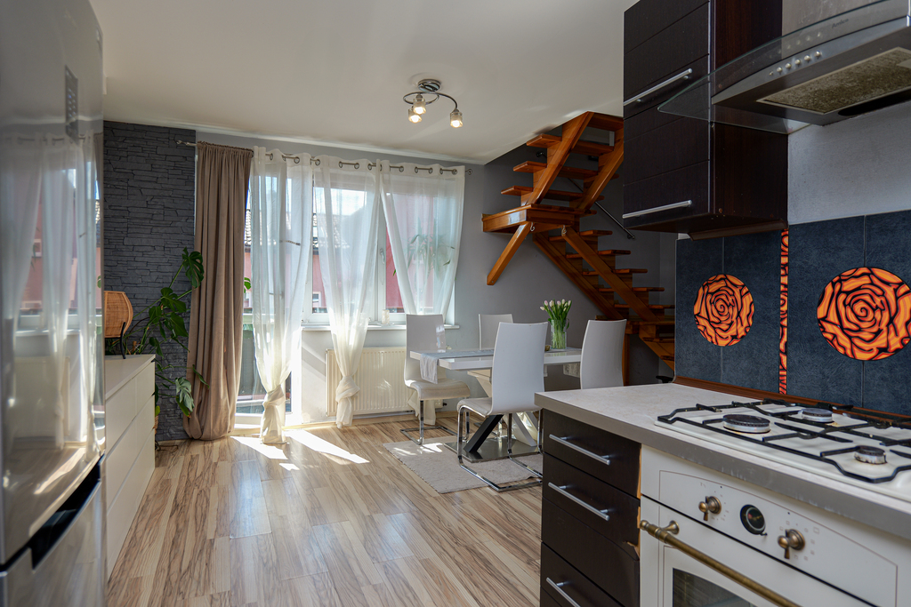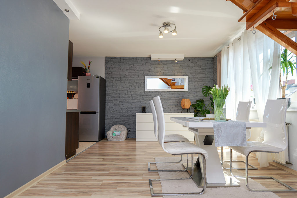 Mieszkanie przeszło niedawno remont części dziennej na parterze oraz poddasza, co znacząco podnosi jego standard.