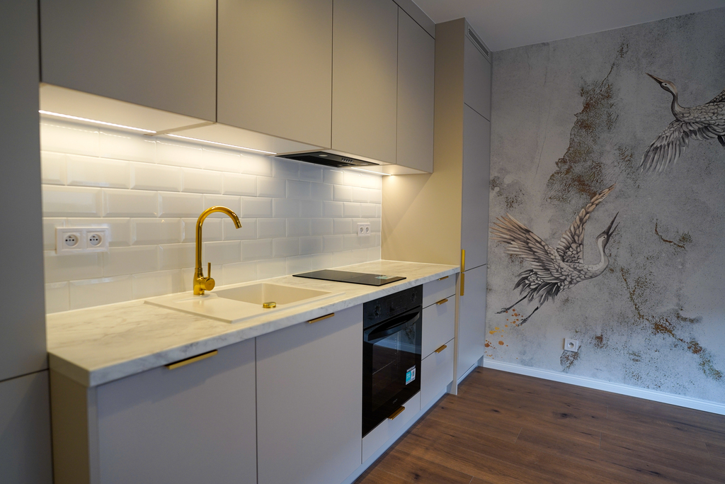 kuchnia – w pełni wyposażona: meble w zabudowie, lodówka, piekarnik, płyta elektryczna, okap,