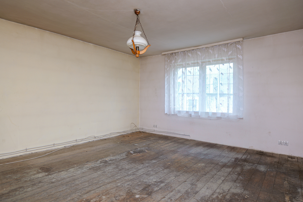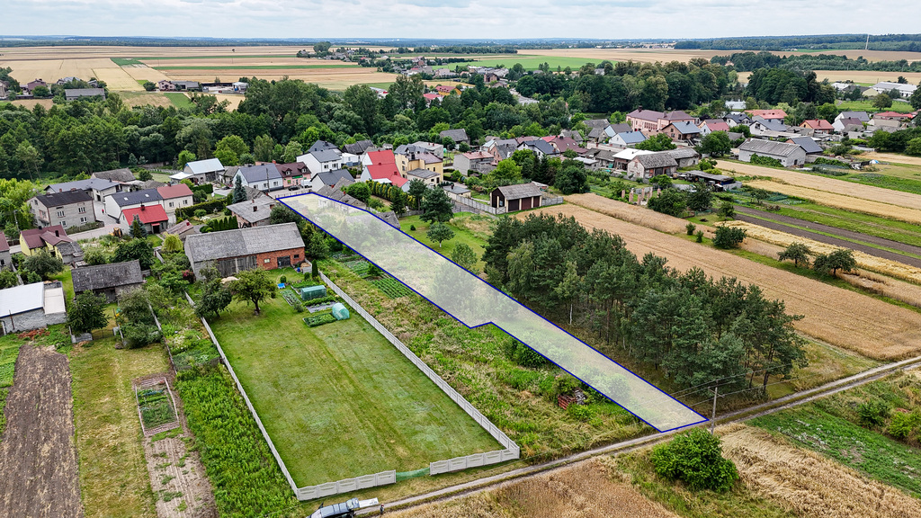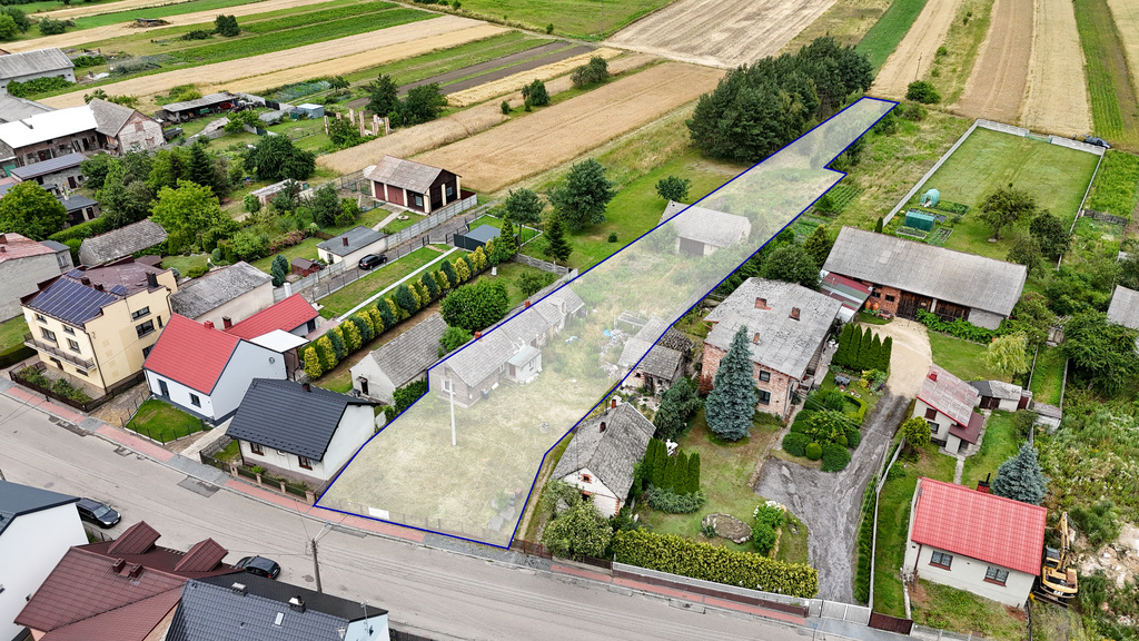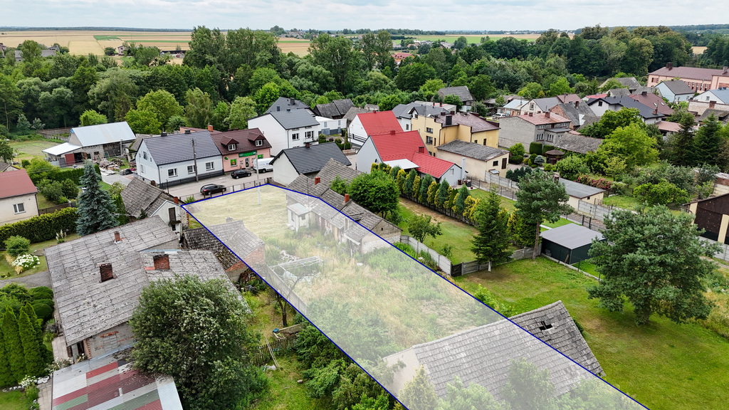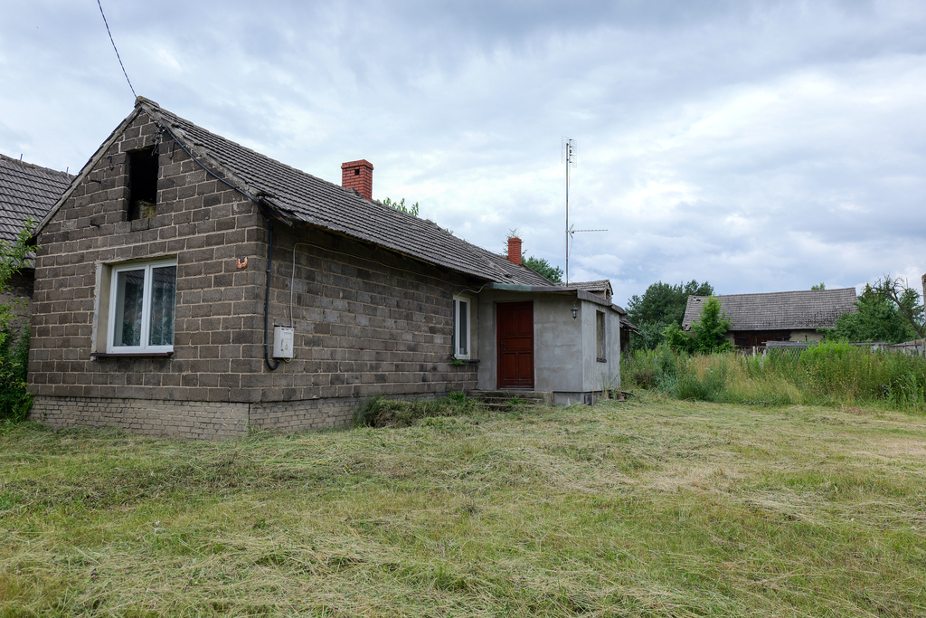 powierzchnia działki: ~ 2485 m², (wymiary ok. 19 m x 160 m) budynek parterowy, wybudowany z cegły, dach dwuspadowy pokryty dachówką, budynek w stanie do remontu.