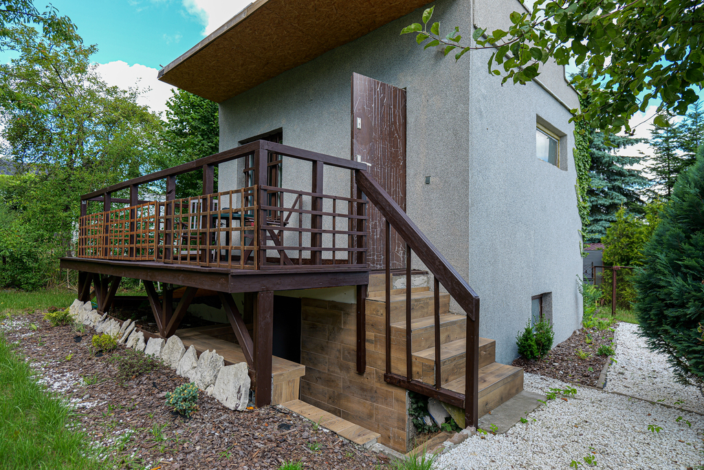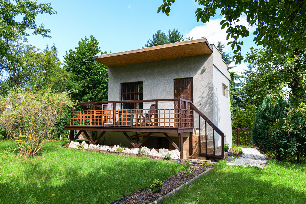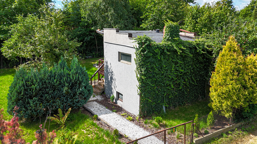 Cechy nieruchomości: powierzchnia użytkowa domku ~ 30 m² (dwa poziomy) + taras,