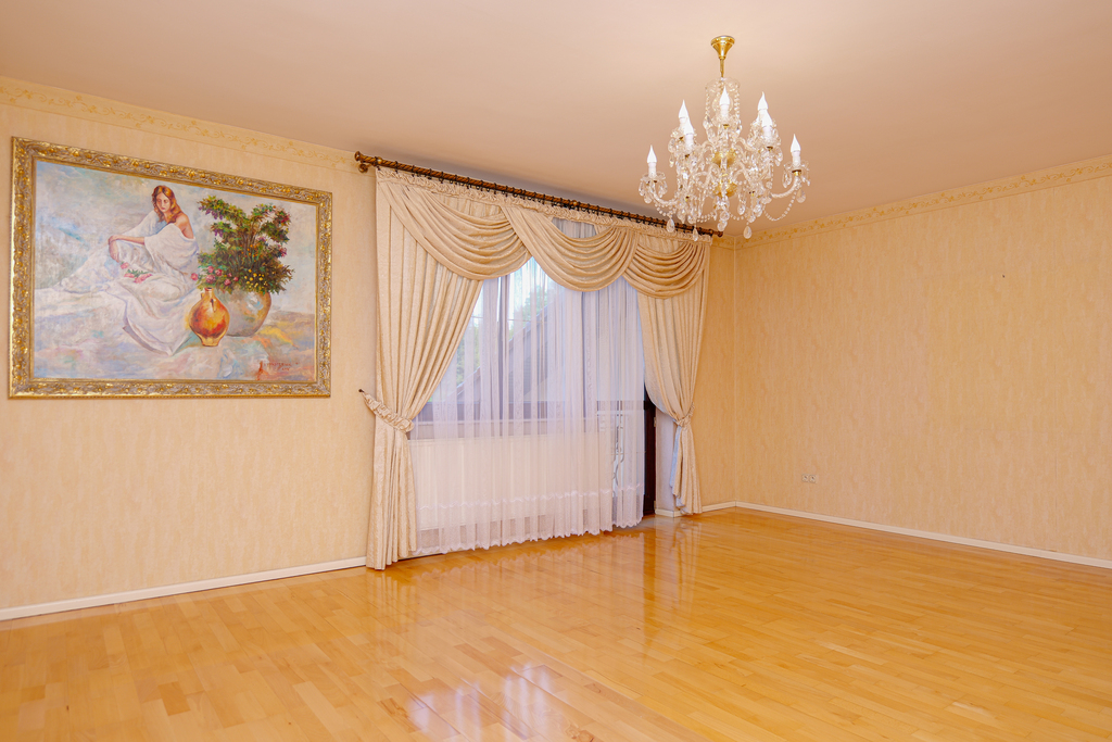 Parter: duży salon z barkiem, jadalnia, łazienka, kuchnia ze spiżarnią, pokój, Piętro: duży pokój połączony z małym, pokój z wyjściem na wspólny balkon, łazienka z jacuzzi, sypialnia z łazienką.